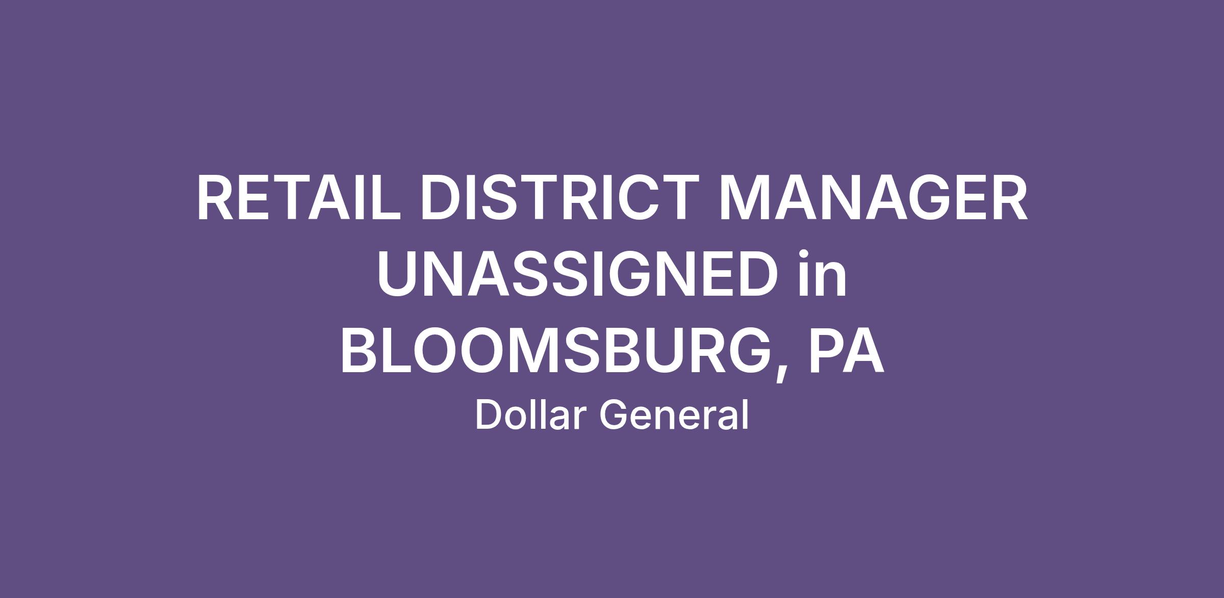 RETAIL DISTRICT MANAGER UNASSIGNED in BLOOMSBURG, PA