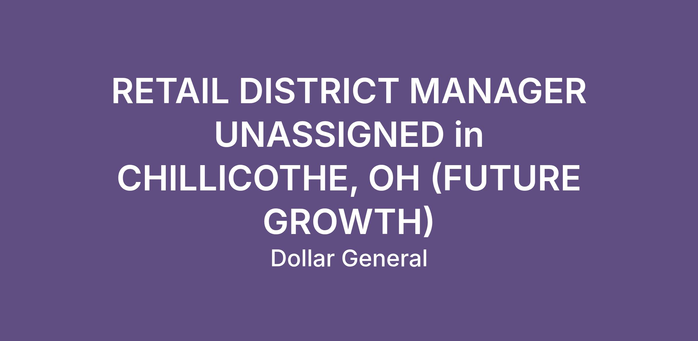 RETAIL DISTRICT MANAGER UNASSIGNED in CHILLICOTHE, OH (FUTURE GROWTH)