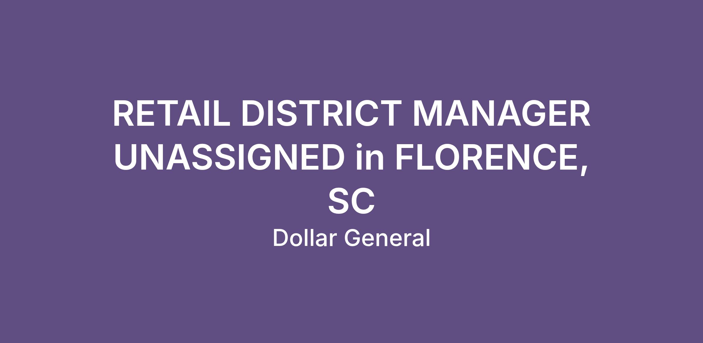 RETAIL DISTRICT MANAGER UNASSIGNED in FLORENCE, SC