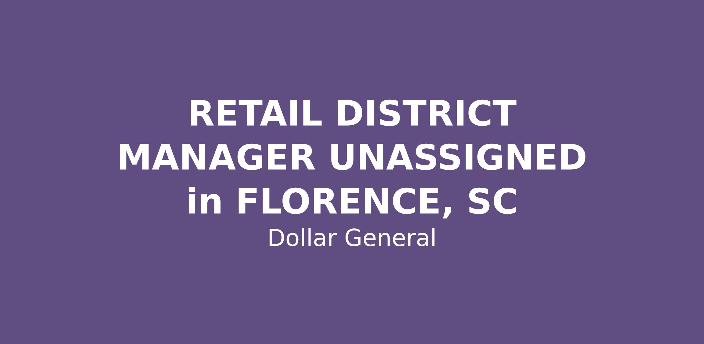 RETAIL DISTRICT MANAGER UNASSIGNED in FLORENCE, SC