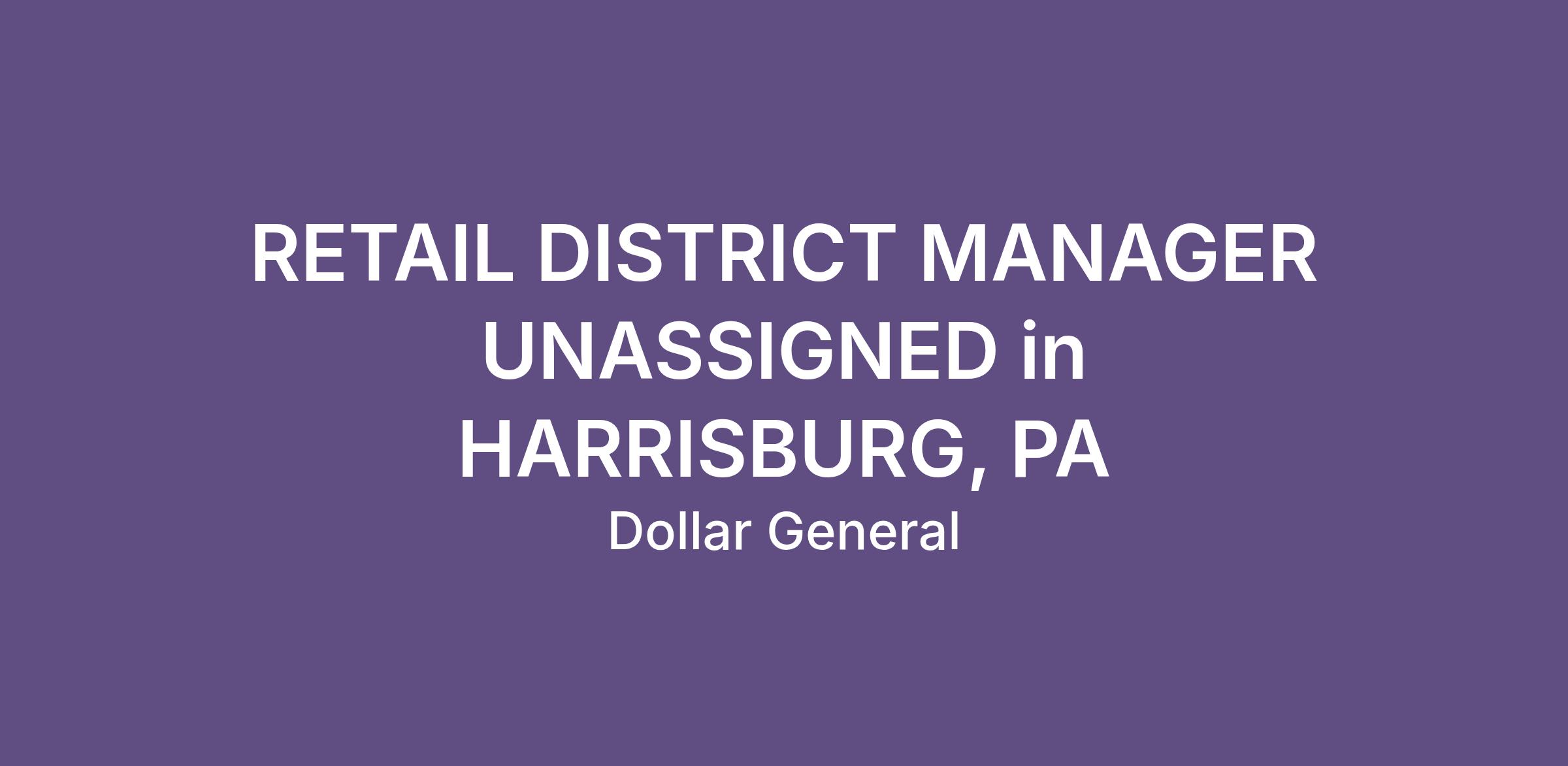 RETAIL DISTRICT MANAGER UNASSIGNED in HARRISBURG, PA