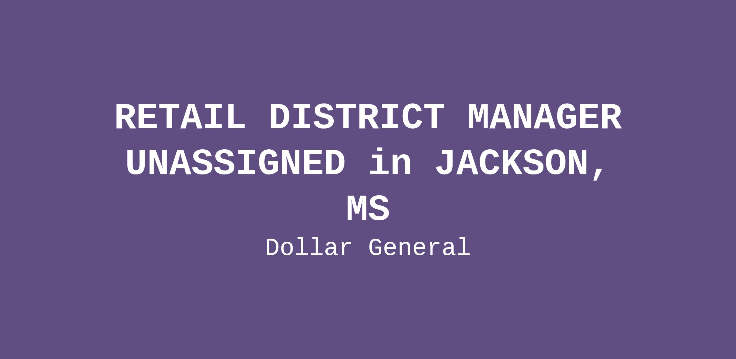 RETAIL DISTRICT MANAGER UNASSIGNED in JACKSON, MS