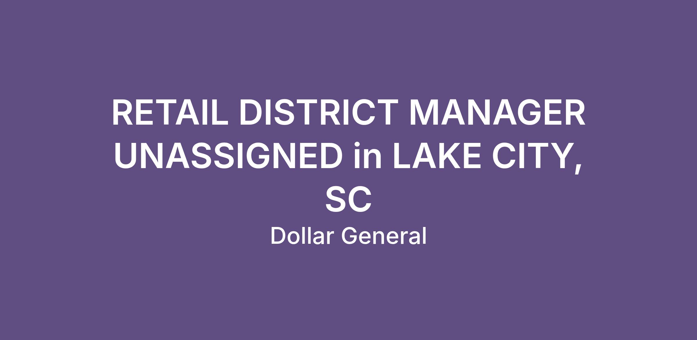 RETAIL DISTRICT MANAGER UNASSIGNED in LAKE CITY, SC