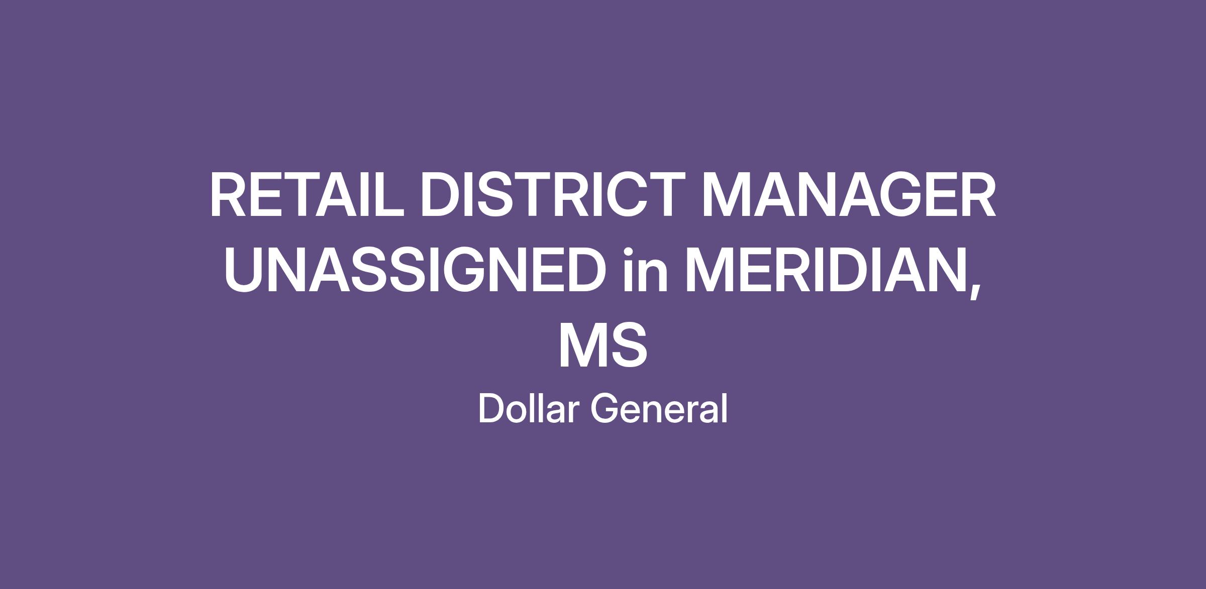 RETAIL DISTRICT MANAGER UNASSIGNED in MERIDIAN, MS