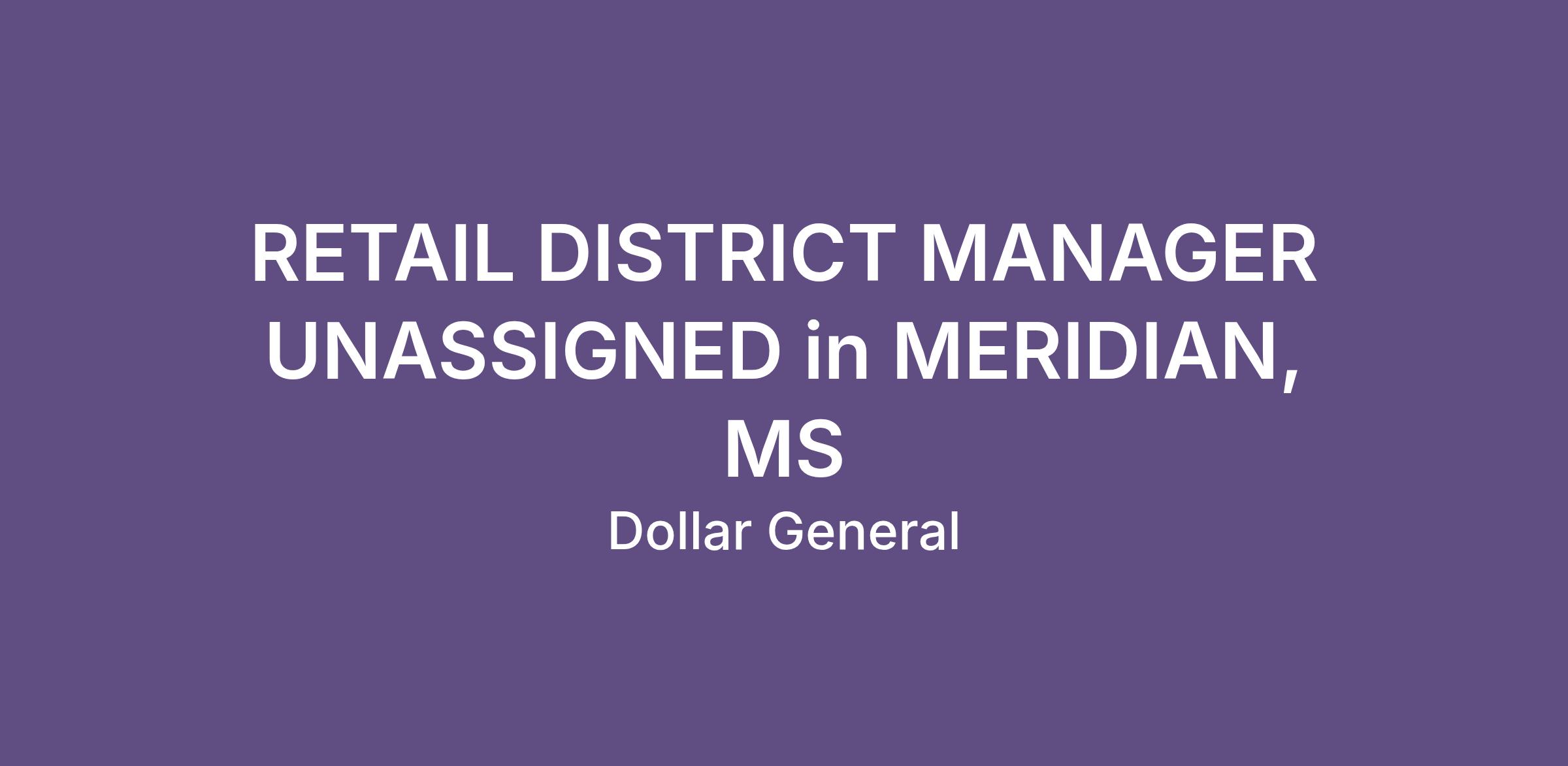 RETAIL DISTRICT MANAGER UNASSIGNED in MERIDIAN, MS