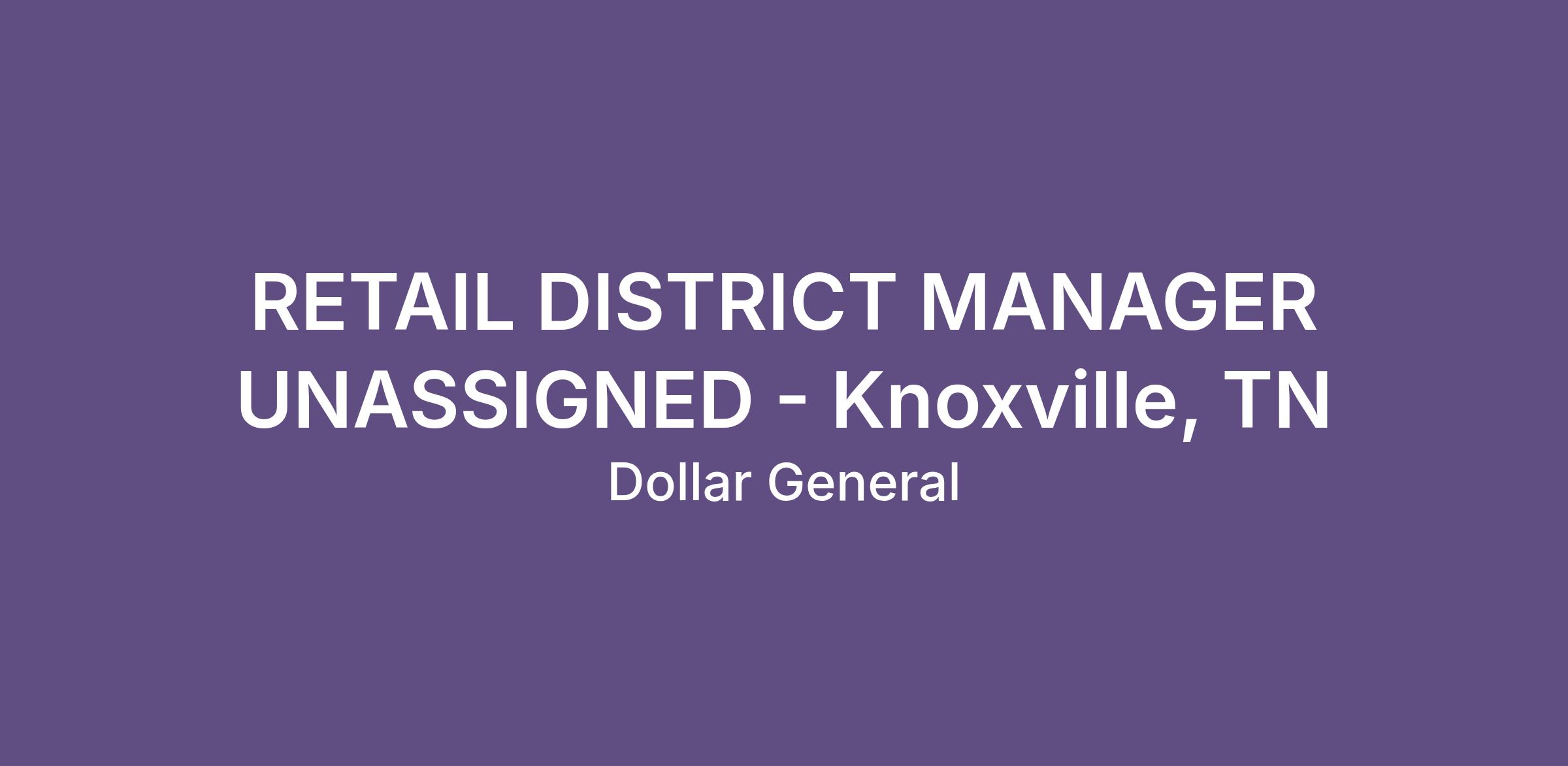 RETAIL DISTRICT MANAGER UNASSIGNED - Knoxville, TN