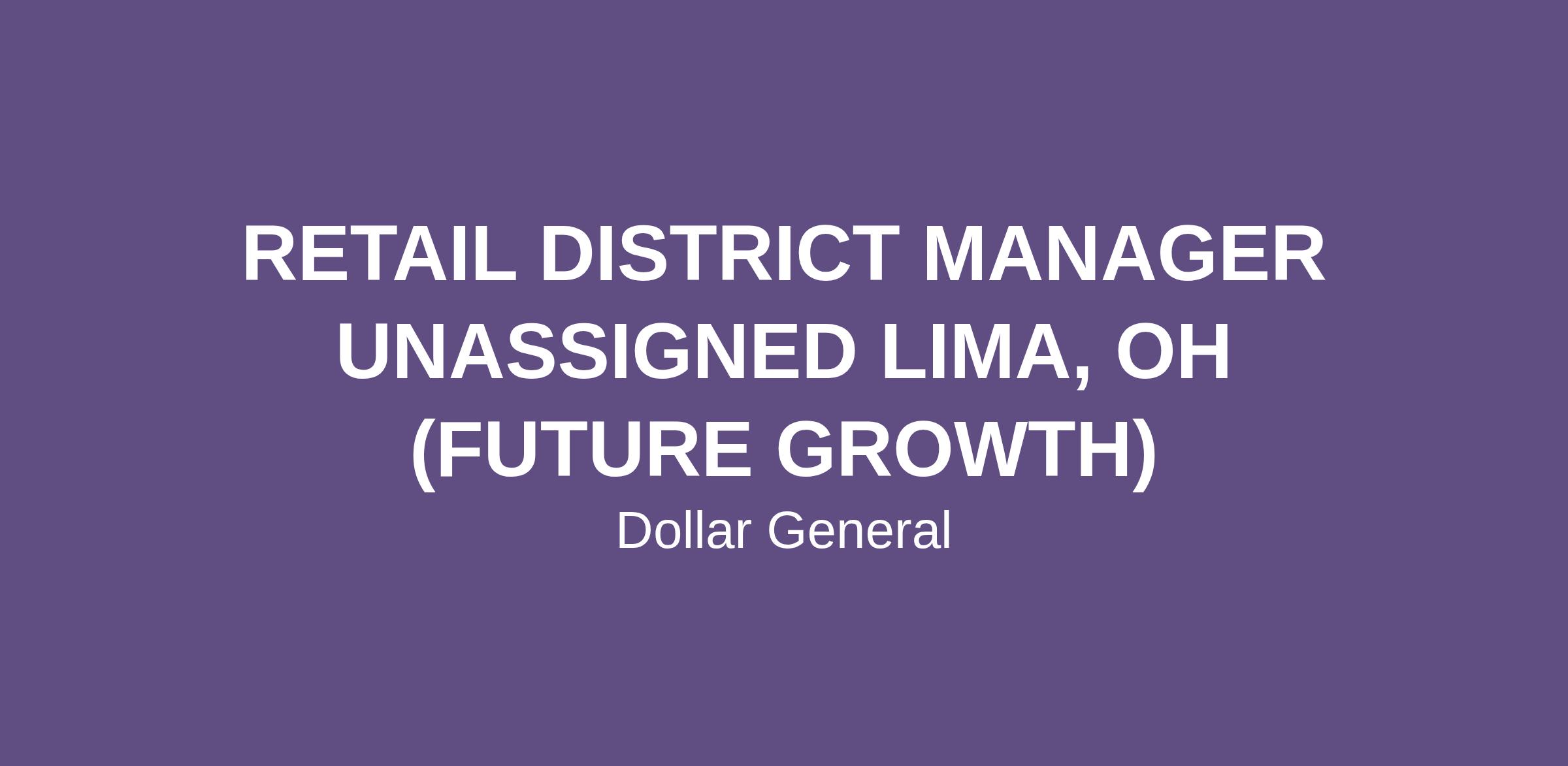 RETAIL DISTRICT MANAGER UNASSIGNED LIMA, OH (FUTURE GROWTH)
