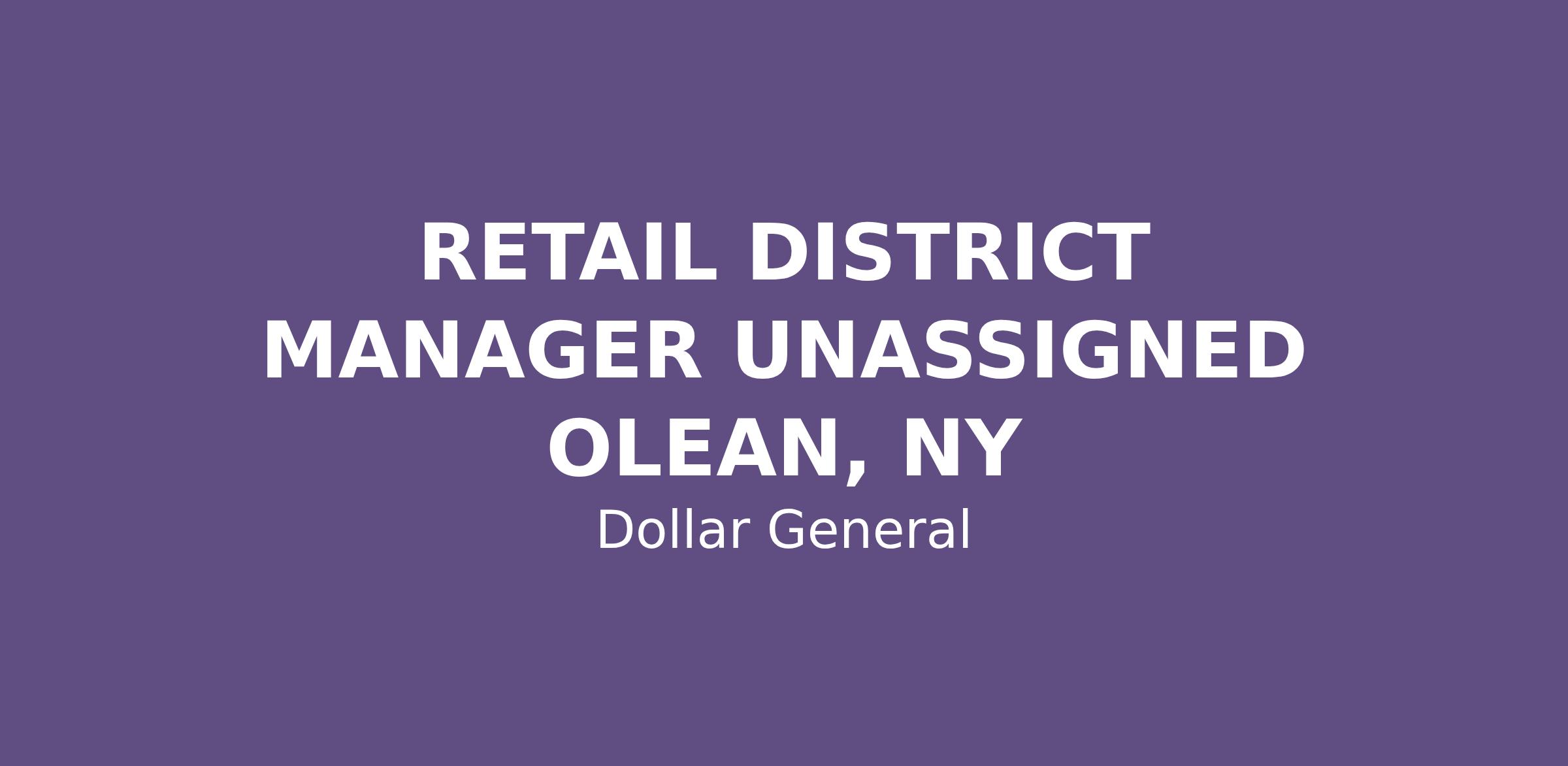 RETAIL DISTRICT MANAGER UNASSIGNED OLEAN, NY