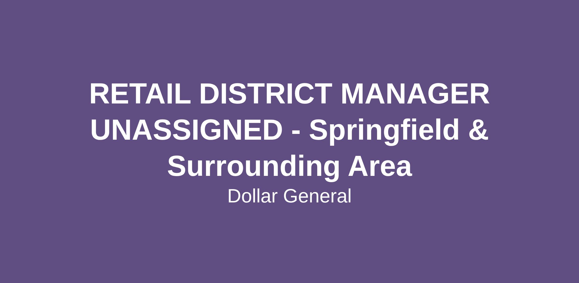 RETAIL DISTRICT MANAGER UNASSIGNED - Springfield & Surrounding Area