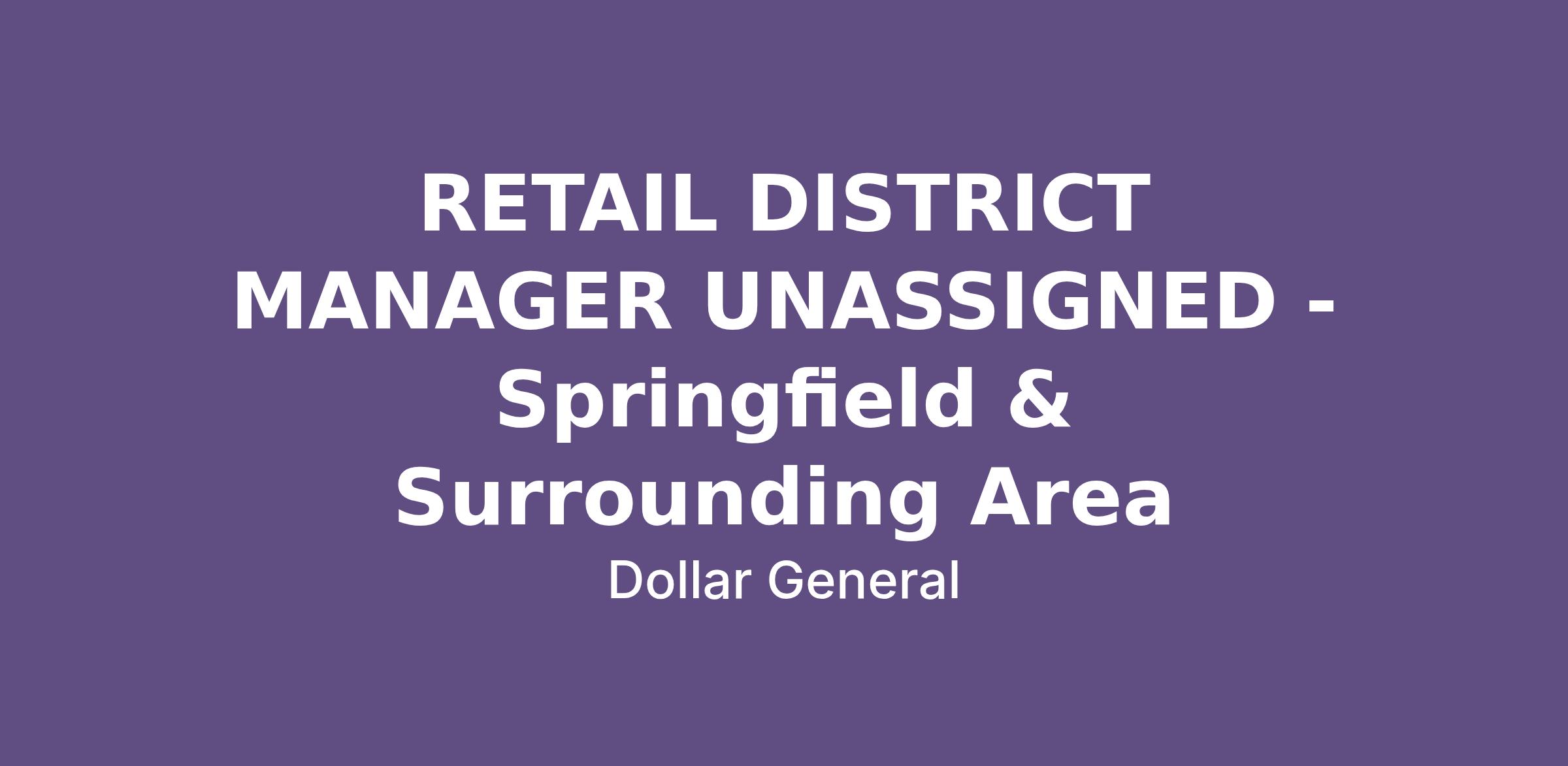 RETAIL DISTRICT MANAGER UNASSIGNED - Springfield & Surrounding Area