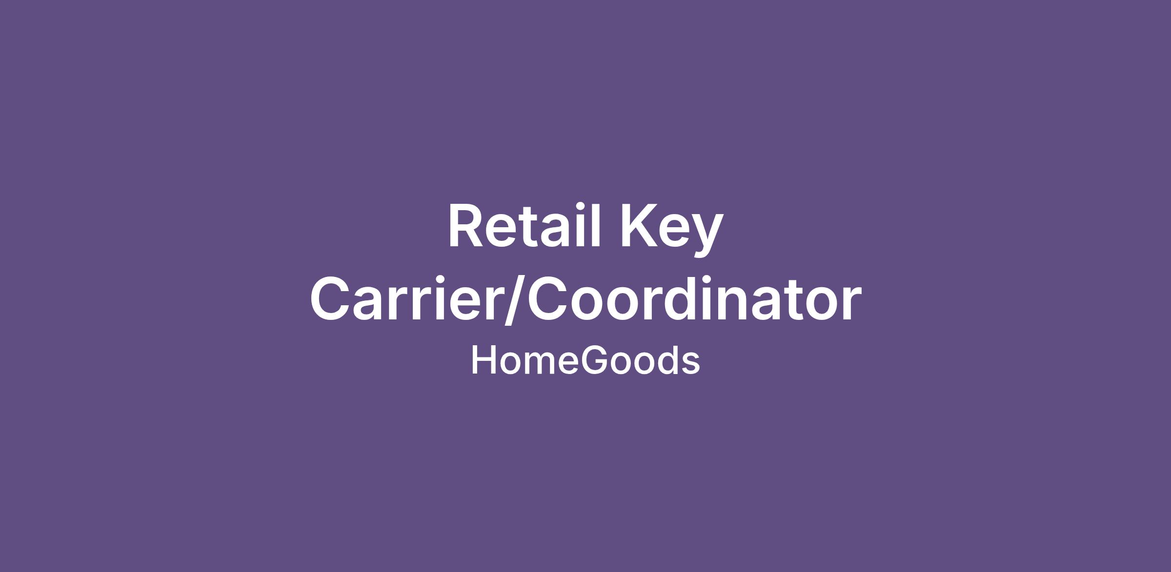 The Key Carrier role is an elevated extension of the Coordinator role. Key Carriers alternate their role based on store needs, predominantly performing the role of Coordinator and occasionally acting as Key Carrier, taking on a leadership role in maintaining all aspects of the store. Key Carriers must have open availability, including nights and weekends. Role models exceptional customer service.