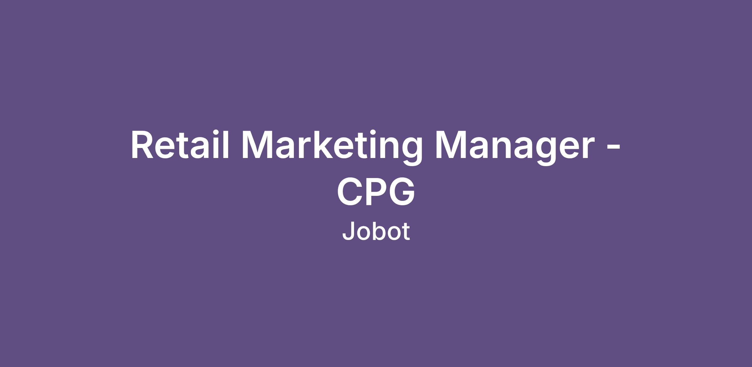 Retail Marketing Manager - CPG