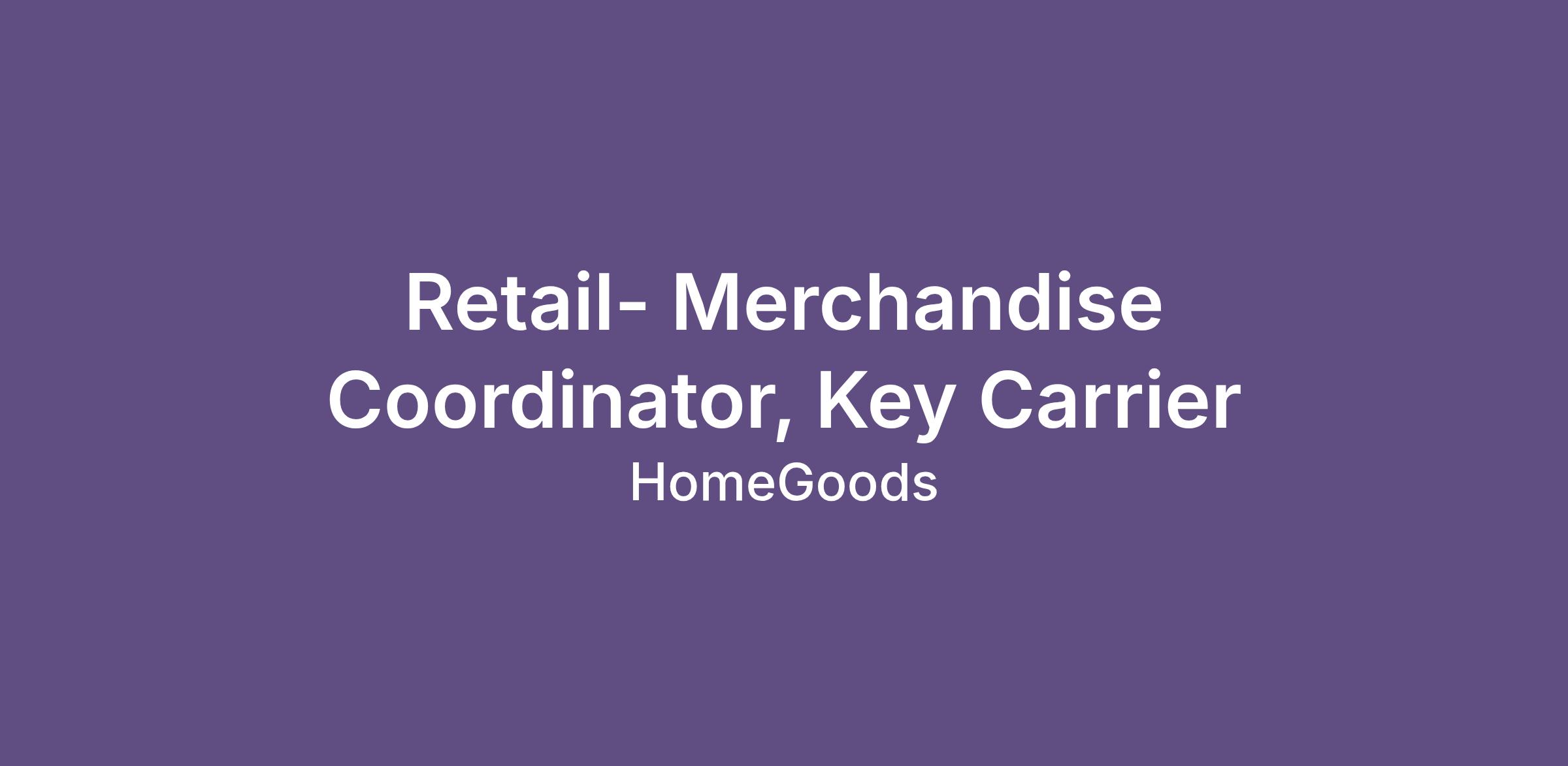 The Key Carrier role is an elevated extension of the Coordinator role. Key Carriers alternate their role based on store needs, predominantly performing the role of Coordinator and occasionally acting as Key Carrier, taking on a leadership role in maintaining all aspects of the store. Key Carriers must have open availability, including nights and weekends. Role models exceptional customer service.