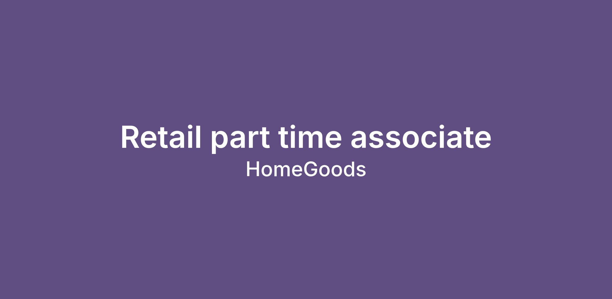 USA HomeGoods Store 0220 Coralville IAThis position has a starting pay range of $12.10 to $12.60 per hour. Actual starting pay is determined by a number of factors, including relevant skills, qualifications, and experience.