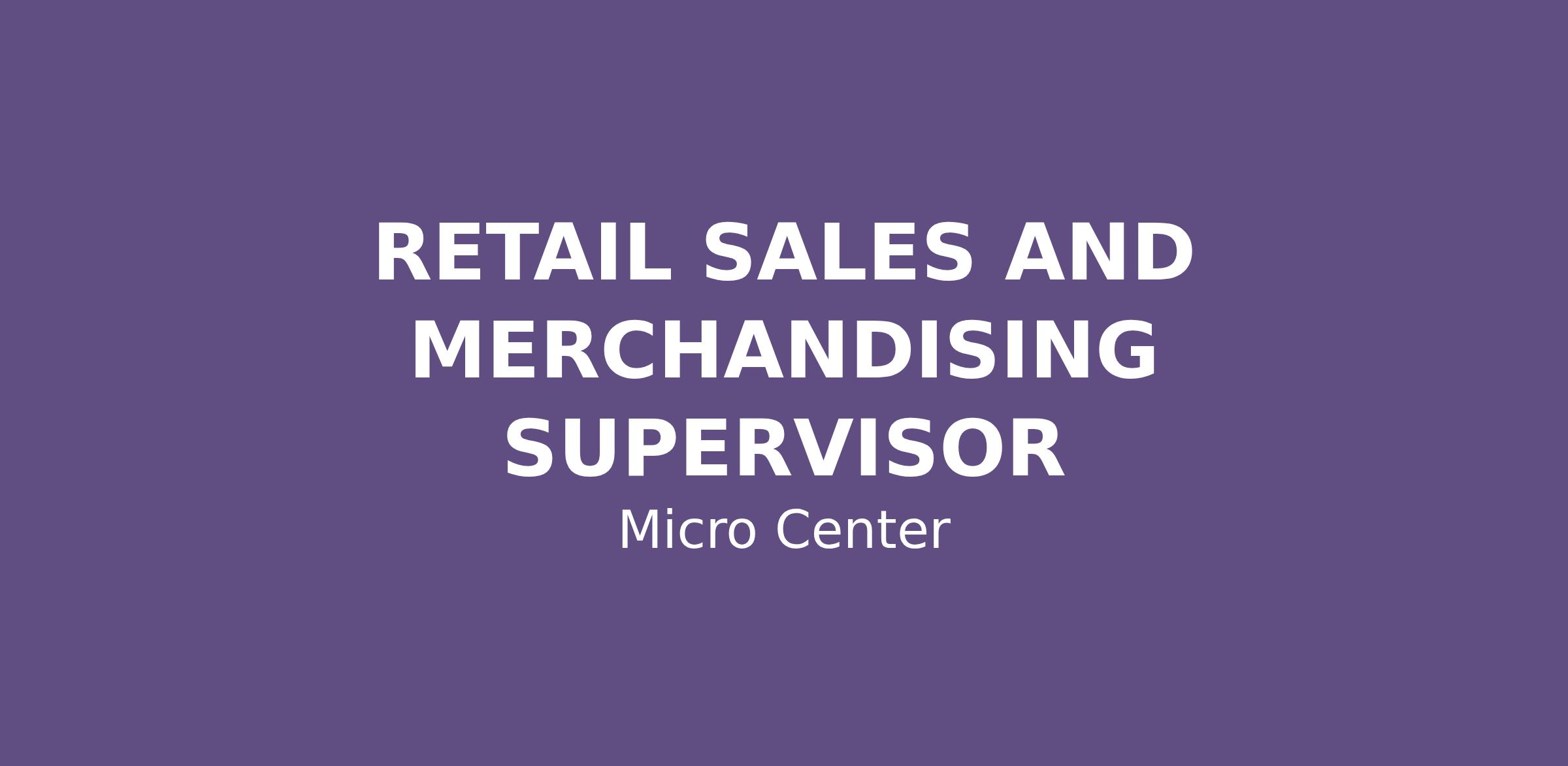 We are currently seeking self-motivated, results oriented RETAIL SALES AND MERCHANDISING SUPERVISOR. It is Micro Center’s core promise to take care of our associates and customers which has led to our success over the last 40+ years!
