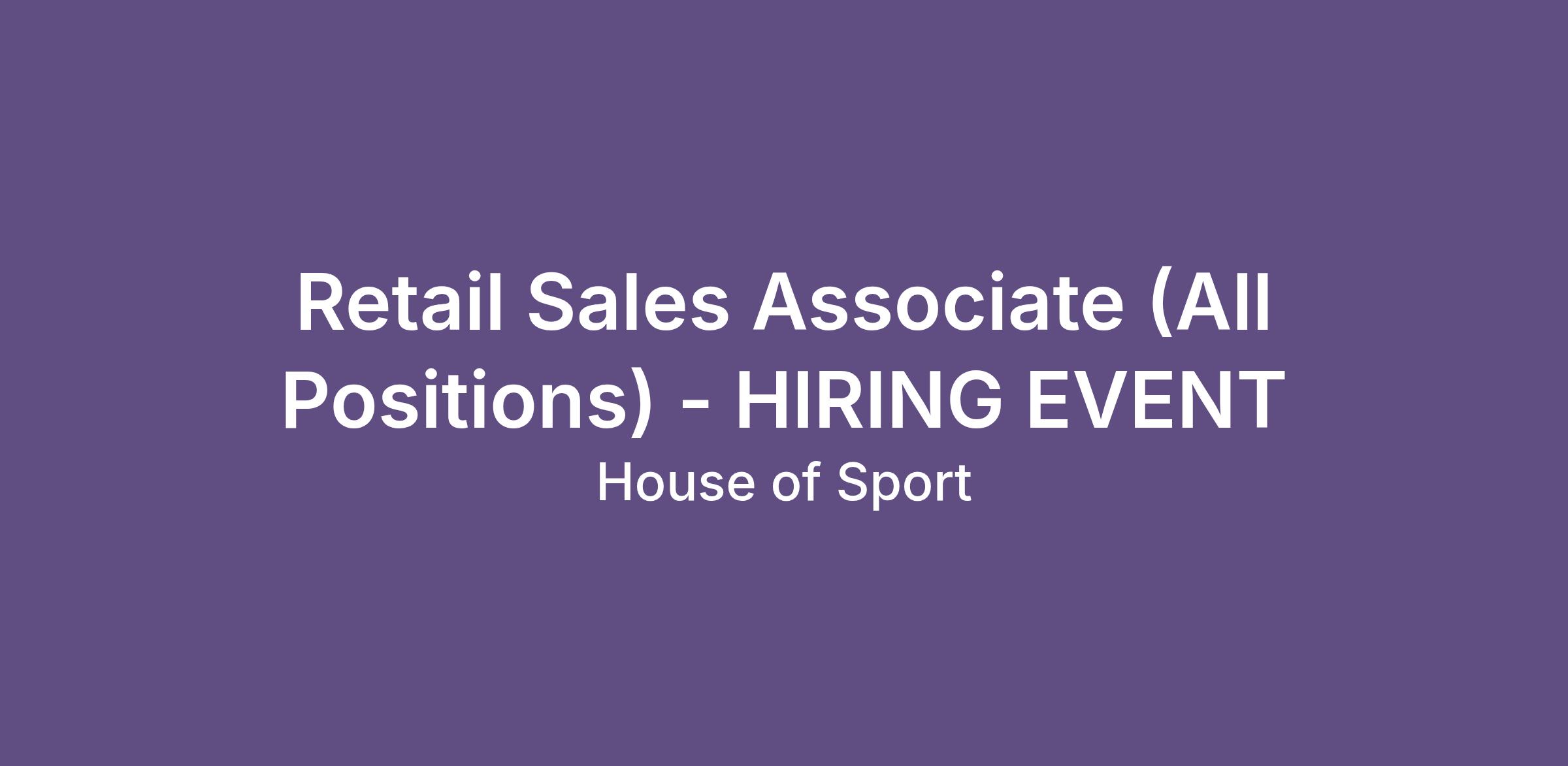 Retail Sales Associate (All Positions) - HIRING EVENT