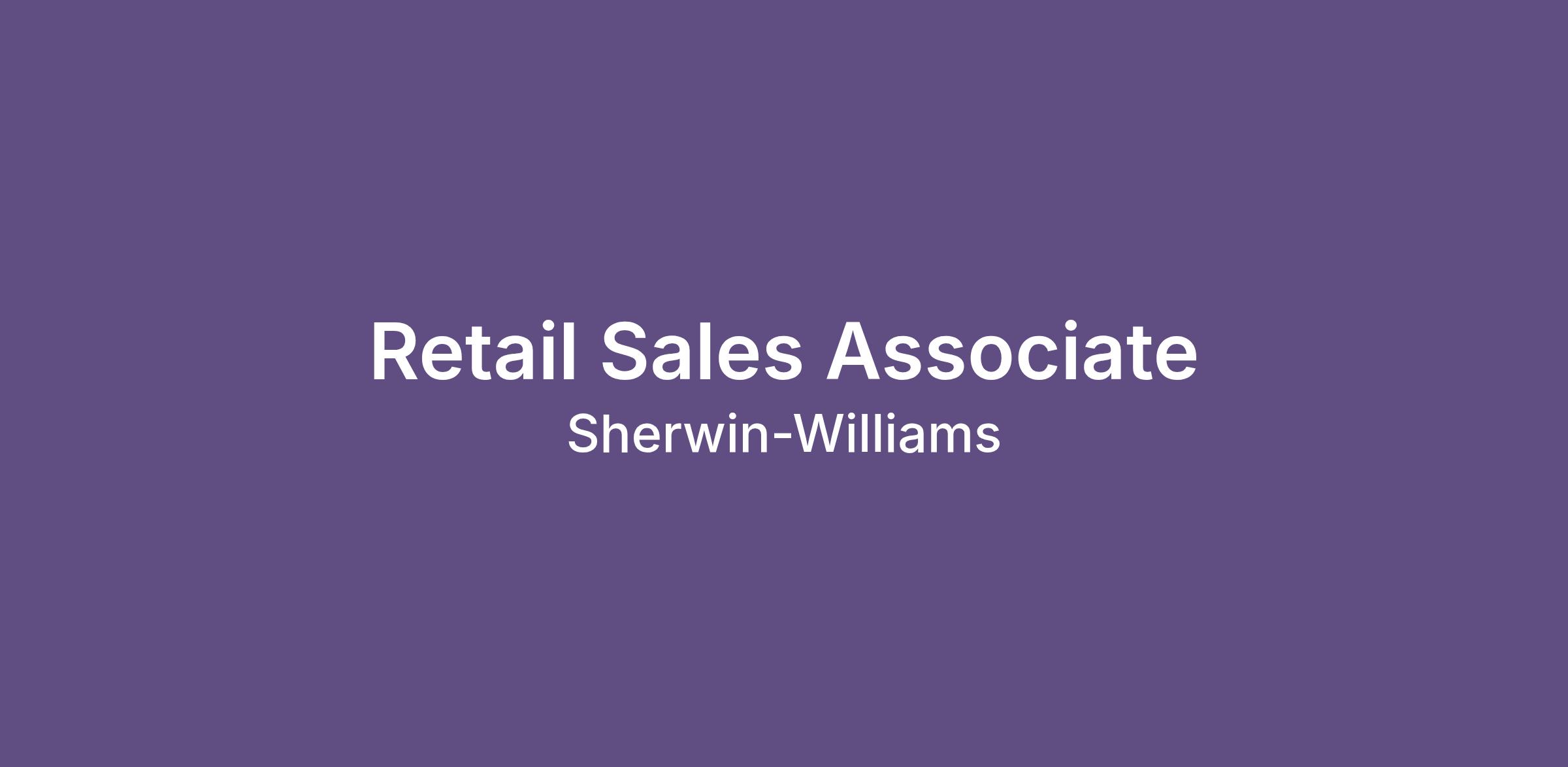 Sherwin-Williams is proud to be an Equal Employment Opportunity employer. All qualified candidates will receive consideration for employment and will not be discriminated against based on race, color, religion, sex, sexual orientation, gender identity, national origin, protected veteran status, disability, age, pregnancy, genetic information, creed, marital status or any other consideration prohibited by law or by contract.