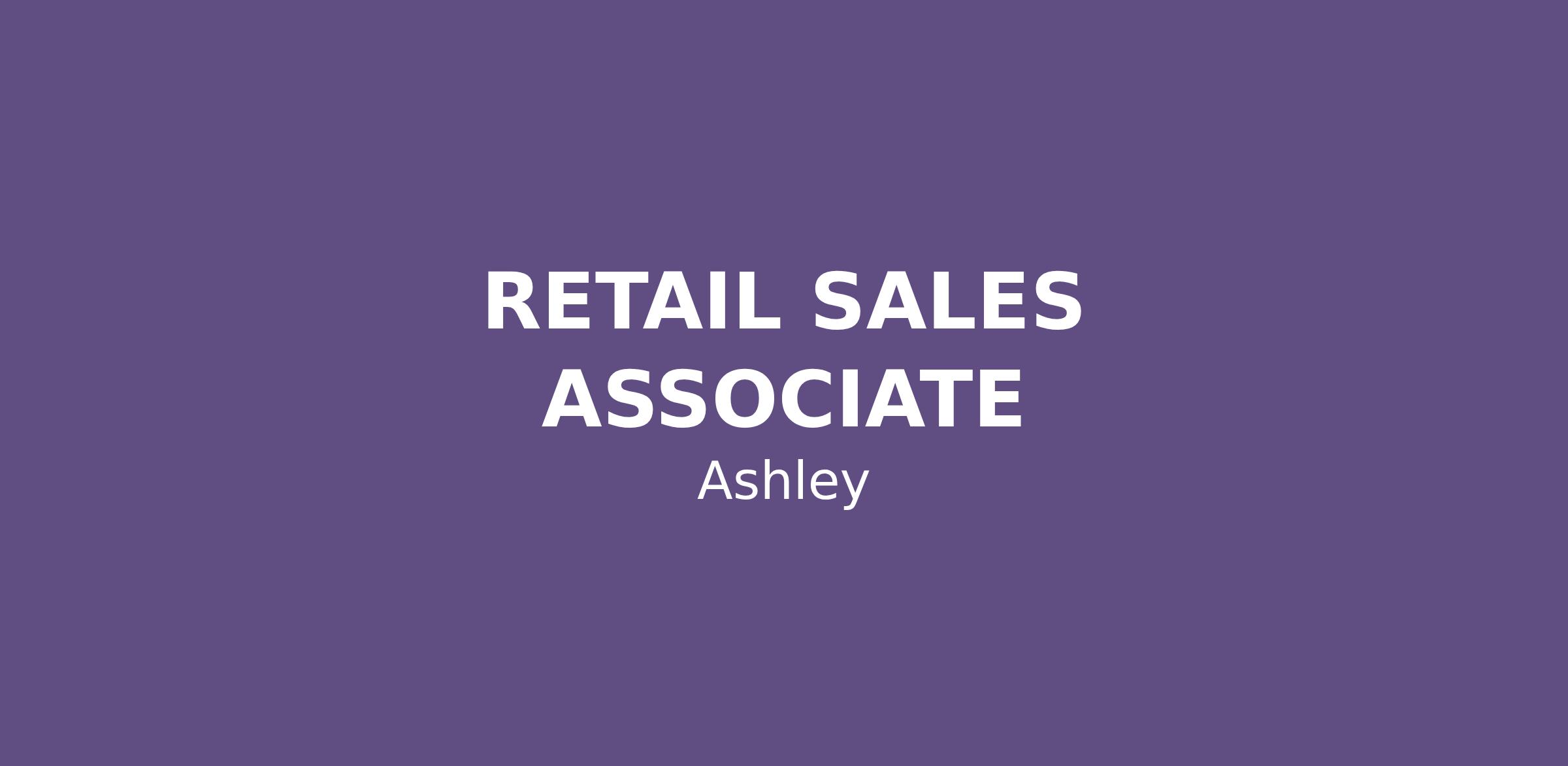 Ashley values its diversity and is proud to be an equal opportunity employer. All employment decisions are made on the basis of an individual’s skills, qualifications, merit, and business need.