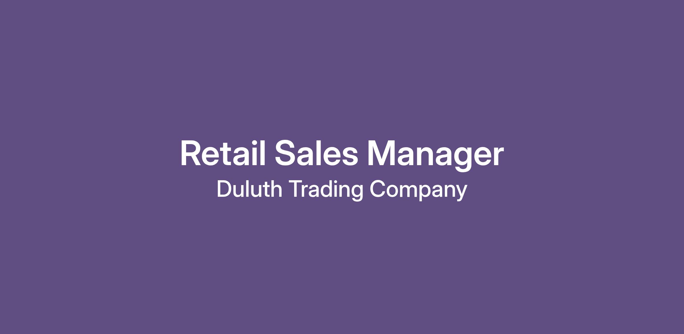 A successful Retail Sales Manager will strive to go for WOW! Go for WOW! is the standard of customer service at Duluth Trading Company. It is treating the customer right and looking for opportunities to go above and beyond to create special experiences.