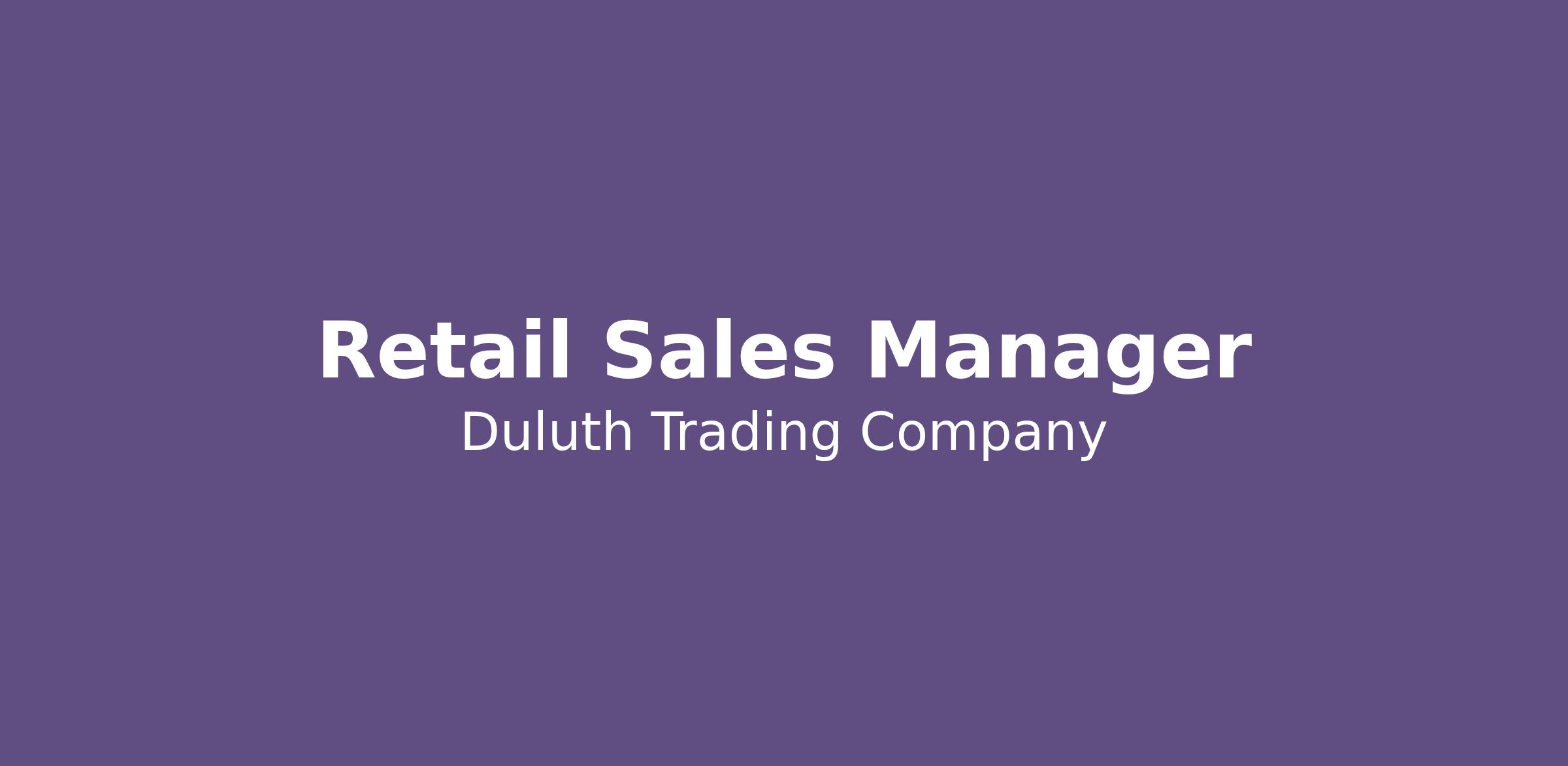 A successful Retail Sales Manager will strive to go for WOW! Go for WOW! is the standard of customer service at Duluth Trading Company. It is treating the customer right and looking for opportunities to go above and beyond to create special experiences.