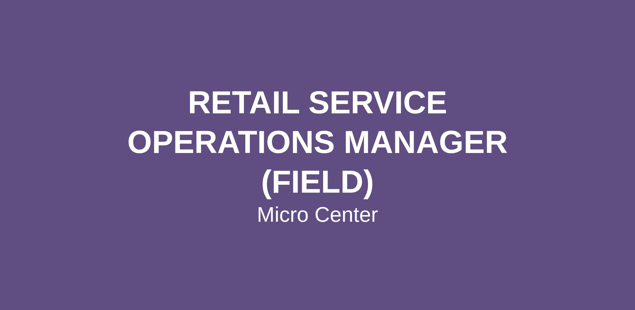 We are seeking a self‑motivated, results‑driven Retail Service Operations Manager (Field) to join our team. The Retail Service Operations Manager (Field) is a senior, field-based Service leadership role responsible for strengthening Service operations and leadership capability in Micro Center stores facing complexity, instability, or sustained performance challenges.