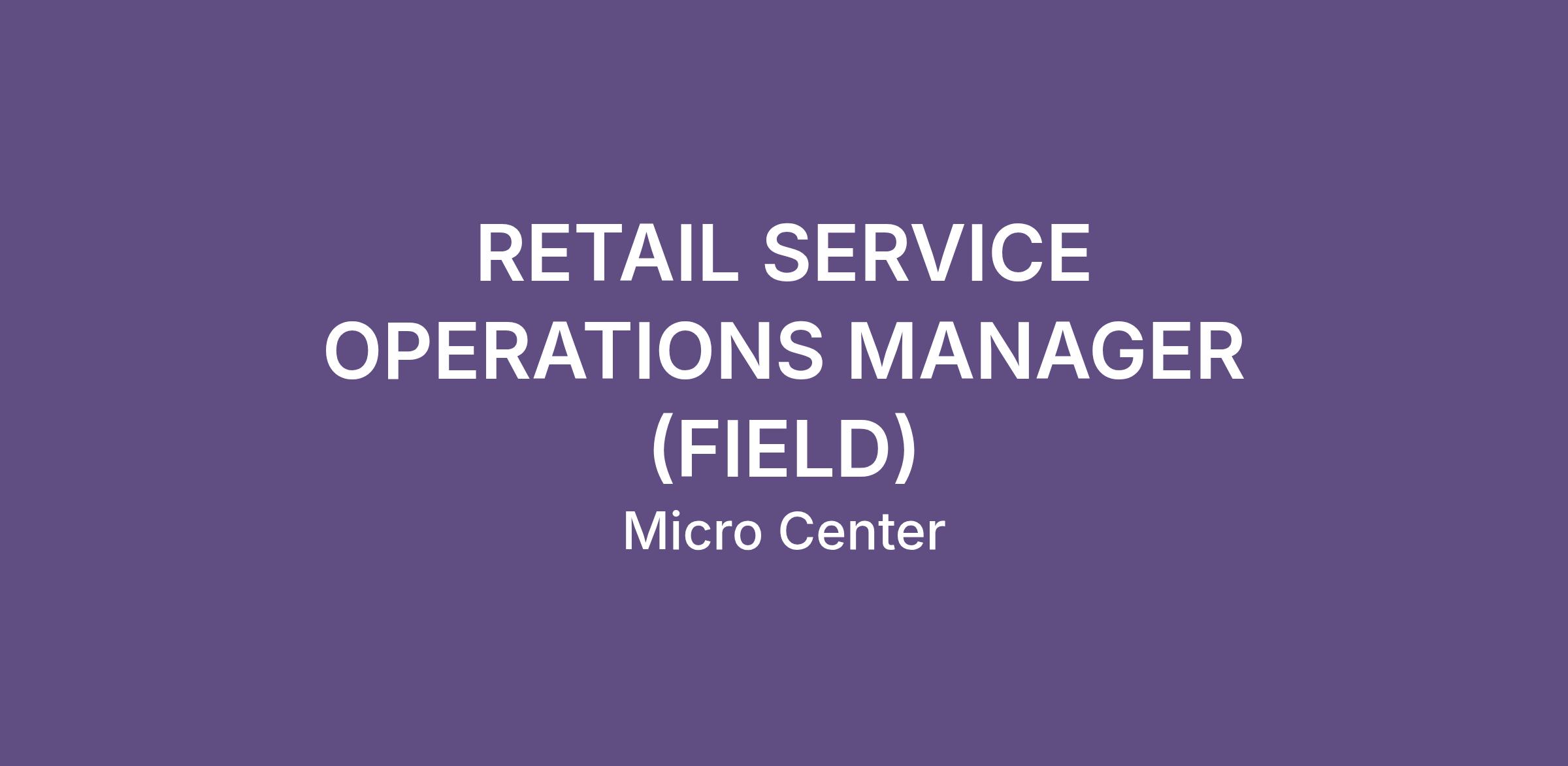 We are seeking a self‑motivated, results‑driven Retail Service Operations Manager (Field) to join our team. The Retail Service Operations Manager (Field) is a senior, field-based Service leadership role responsible for strengthening Service operations and leadership capability in Micro Center stores facing complexity, instability, or sustained performance challenges.