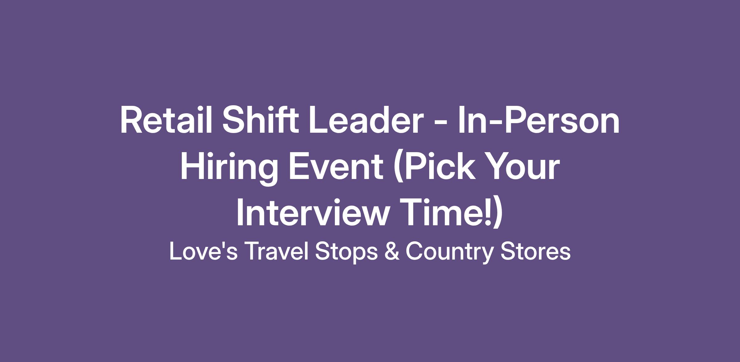 Retail Shift Leader - In-Person Hiring Event (Pick Your Interview Time!)