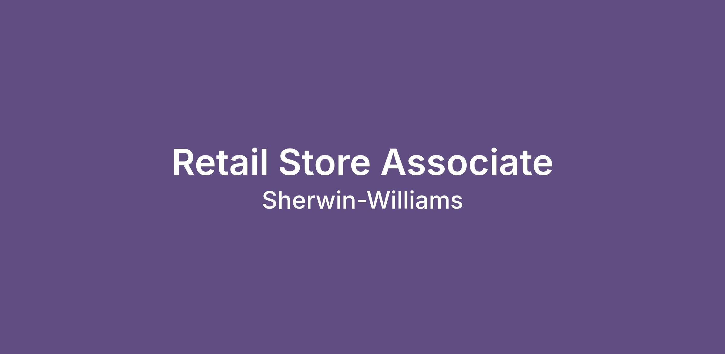 This position is essential to the success of our retail stores. Store associates work closely with wholesale and retail customers to determine their needs, answer their questions about Sherwin-Williams products, and recommend the right solutions. Store associates are also expected to promptly resolve any customer concerns and ensure maximum client satisfaction as well as stay up-to-date with product features and maintain the high quality and visual standards of the products and store. Store associates are tasked with achieving excellent customer service, while consistently meeting the store’s sales goals.