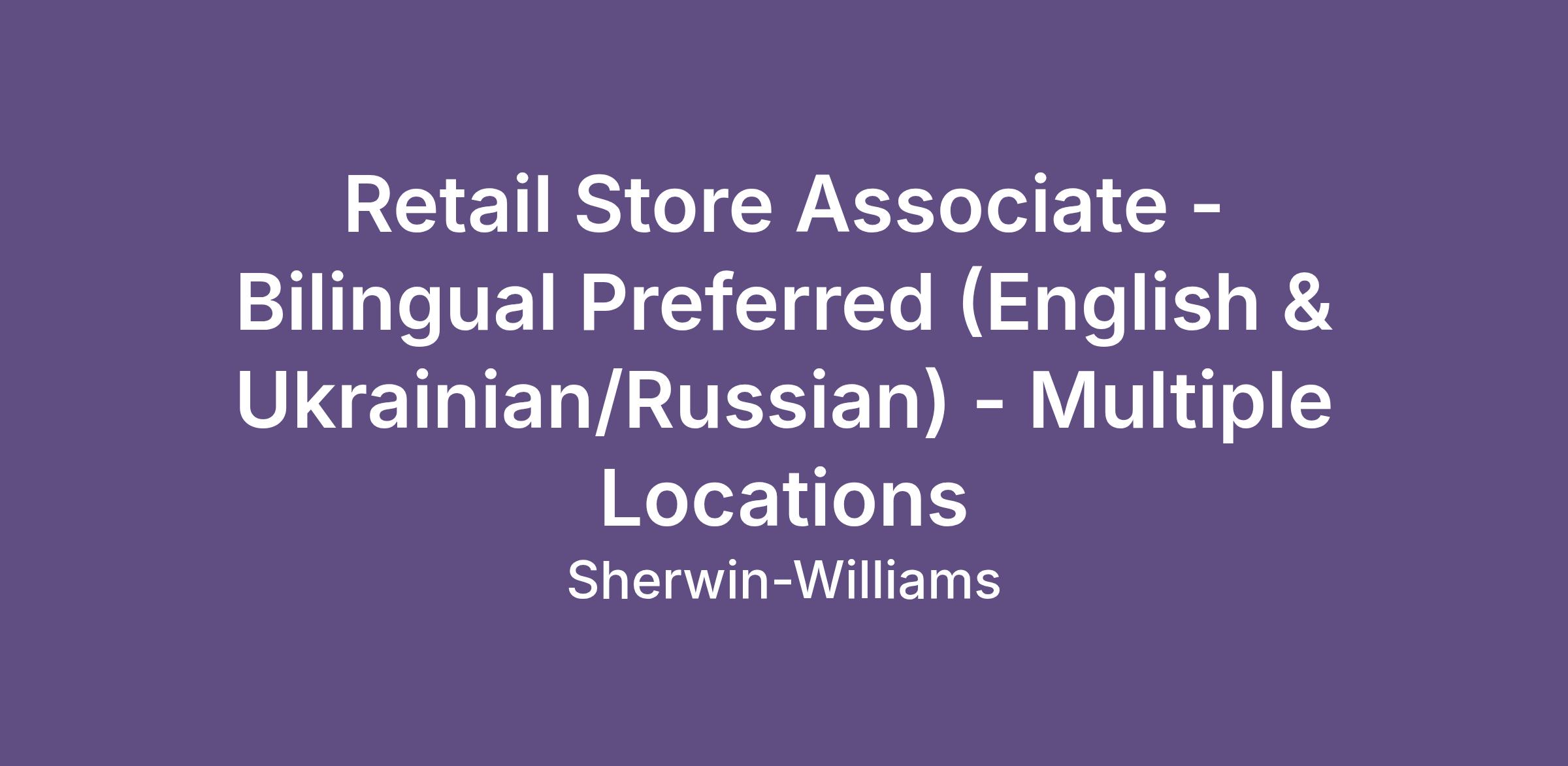 Retail Store Associate - Bilingual Preferred (English & Ukrainian/Russian) - Multiple Locations