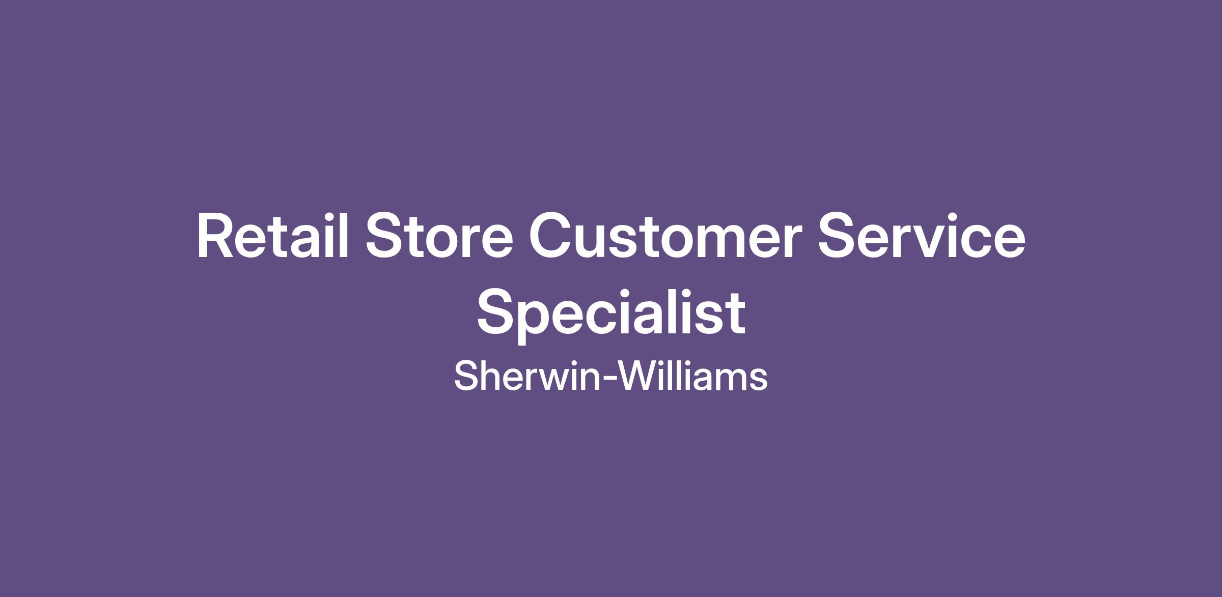 This position is essential to the success of our retail stores. Customer Service Specialists work closely with wholesale and retail customers to determine their needs, answer their questions about Sherwin-Williams products, and recommend the right solutions. Customer Service Specialists are also expected to promptly resolve any customer concerns and ensure maximum client satisfaction as well as stay up-to-date with product features and maintain the high quality and visual standards of the products and store. Customer Service Specialists are tasked with achieving excellent customer service, while consistently meeting the store’s sales goals.