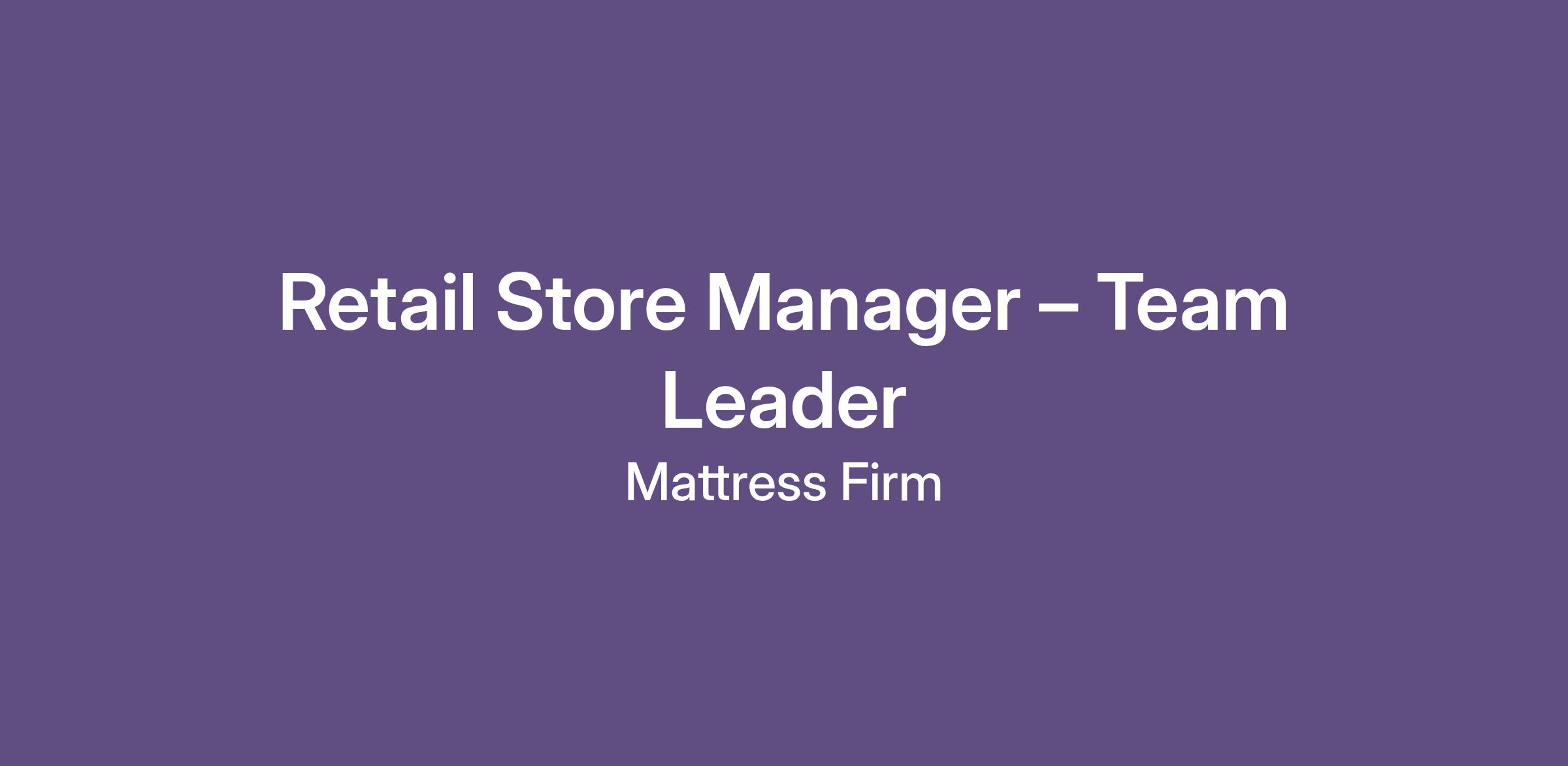 The Store Manager leads Mattress Firm's vision, Company Initiatives, and achieves sales performance goals by holding associates accountable for the execution of in-store merchandising in multiple store units.  In addition, leads selling programs and driving related KPI results in multiple store units and supporting the omni-channel experience.  This individual ensures teams always put the customer at the center and creates a compelling and engaging environment for MFRM team members. As an effective coach, the Store Manager develops associates' skills and performance, fostering a collaborative and motivated team dedicated to achieving success.