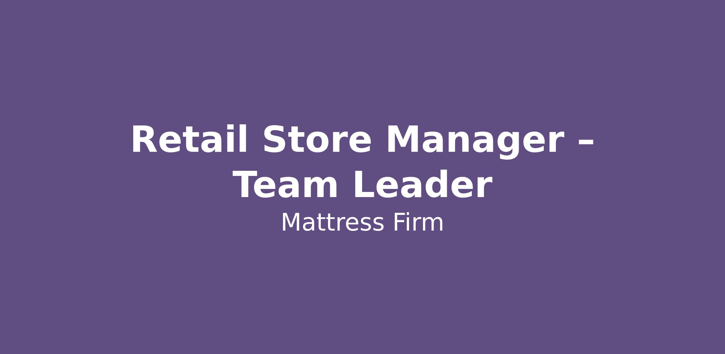 Retail Store Manager – Team Leader