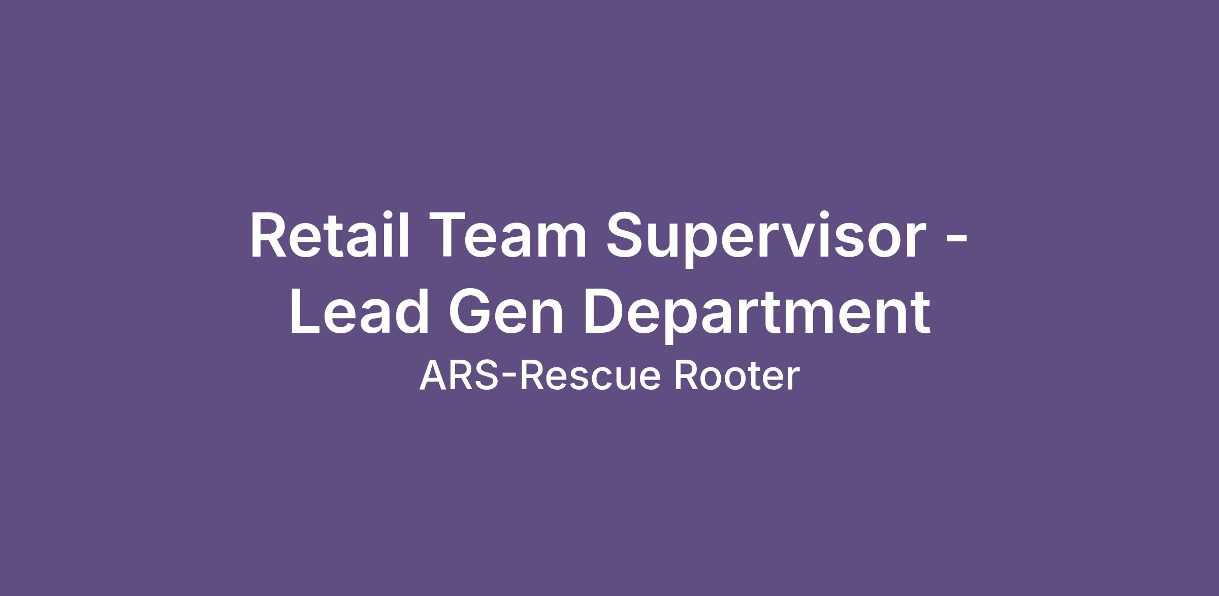 Retail Team Supervisor - Lead Gen Department