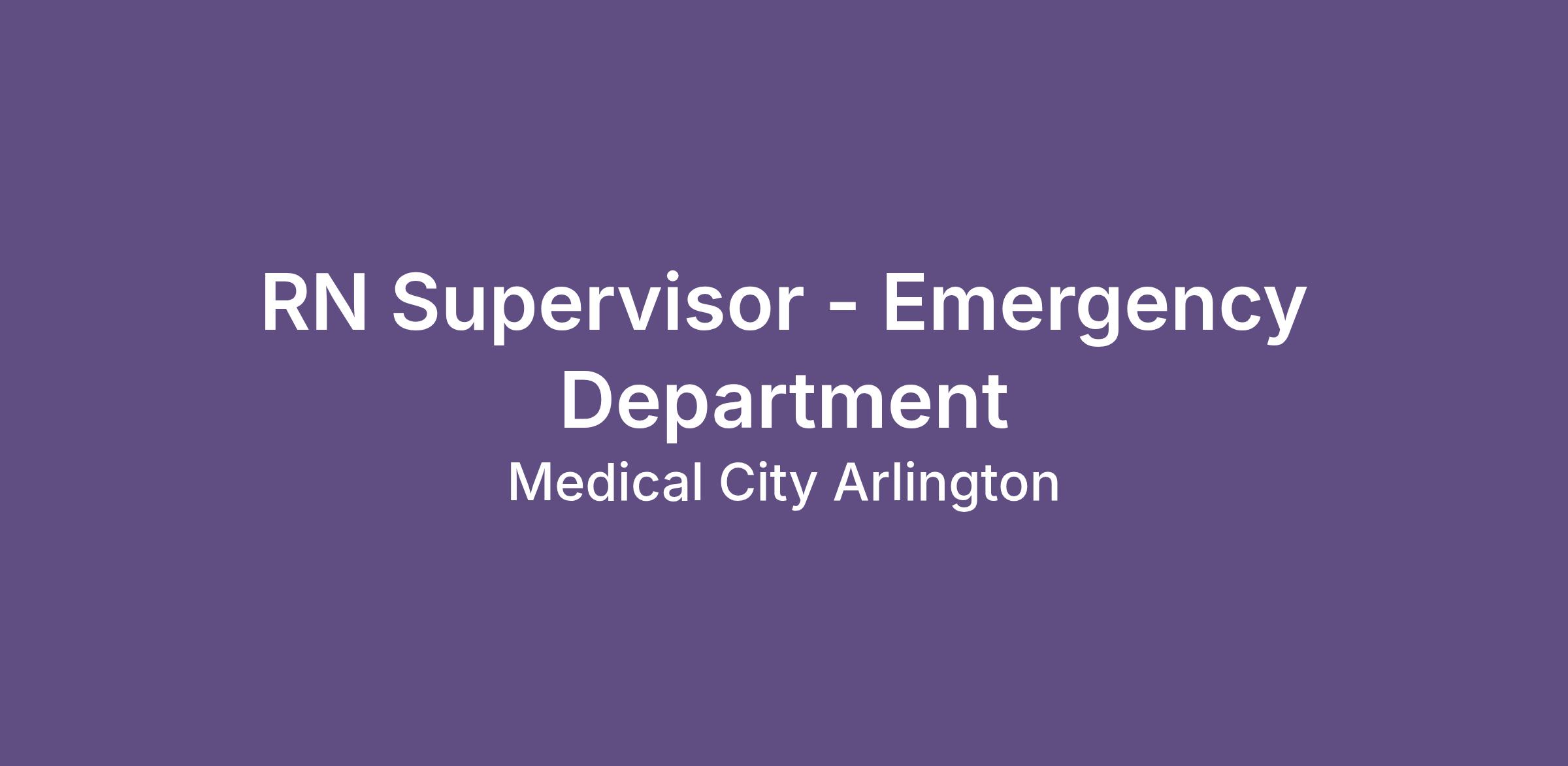 Do you have the career opportunities as a RN Supervisor - Emergency Department you want in your current role? We invest in what matters most to nurses like you – at home, at work, and at every stage in your career. We have an exciting opportunity for you to join Medical City Arlington which is a part of the nation’s leading provider of healthcare services, HCA Healthcare.