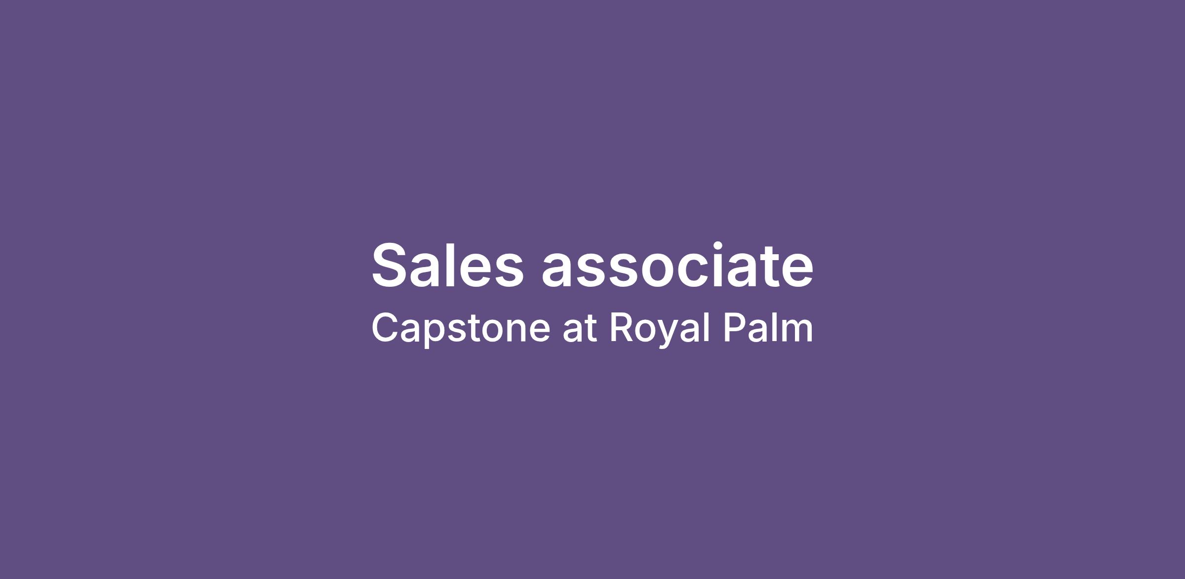 Discovery is hiring a Sales Associate for our community The Capstone at Royal Palm.