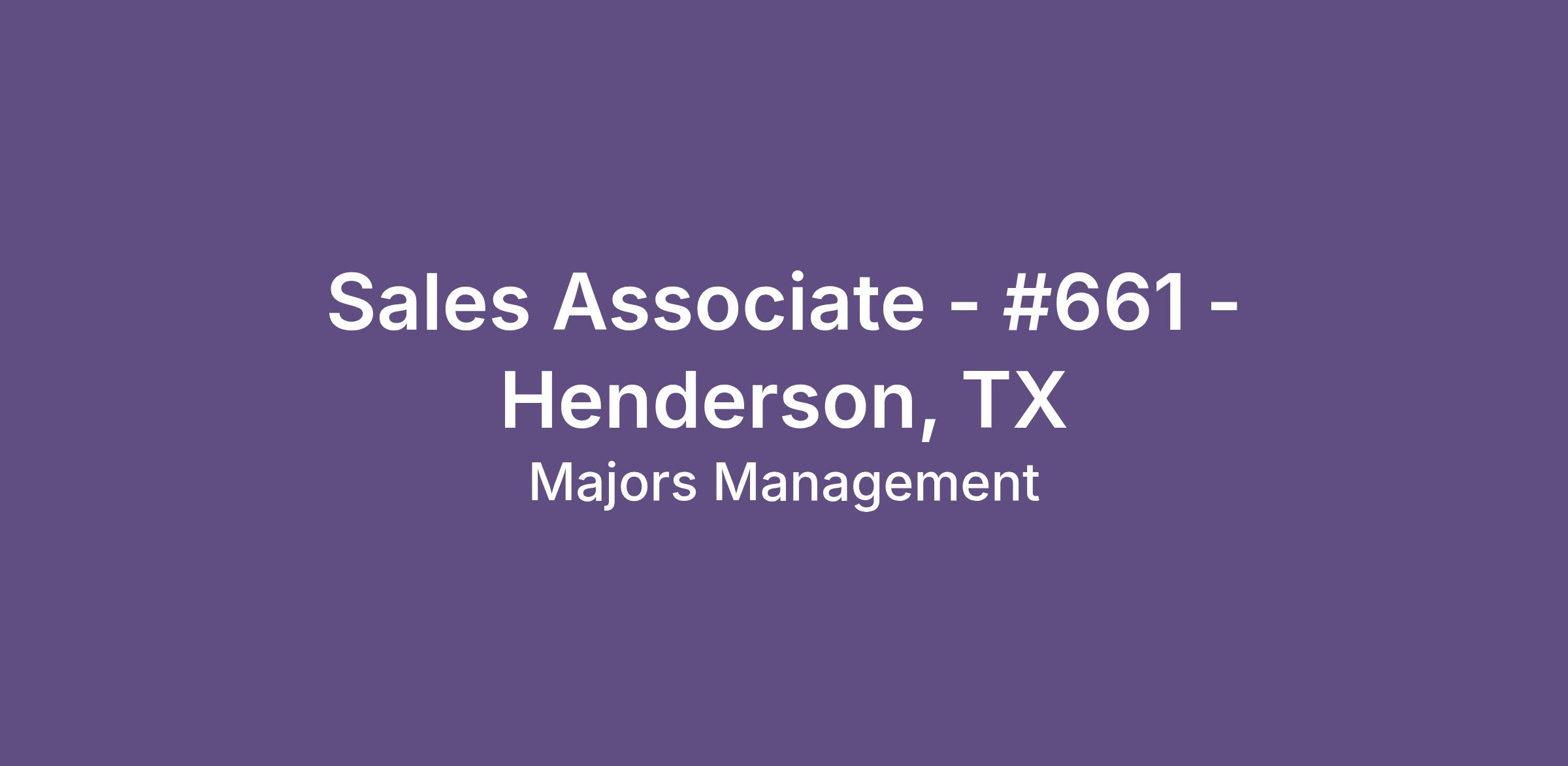Sales Associate - #661 - Henderson, TX