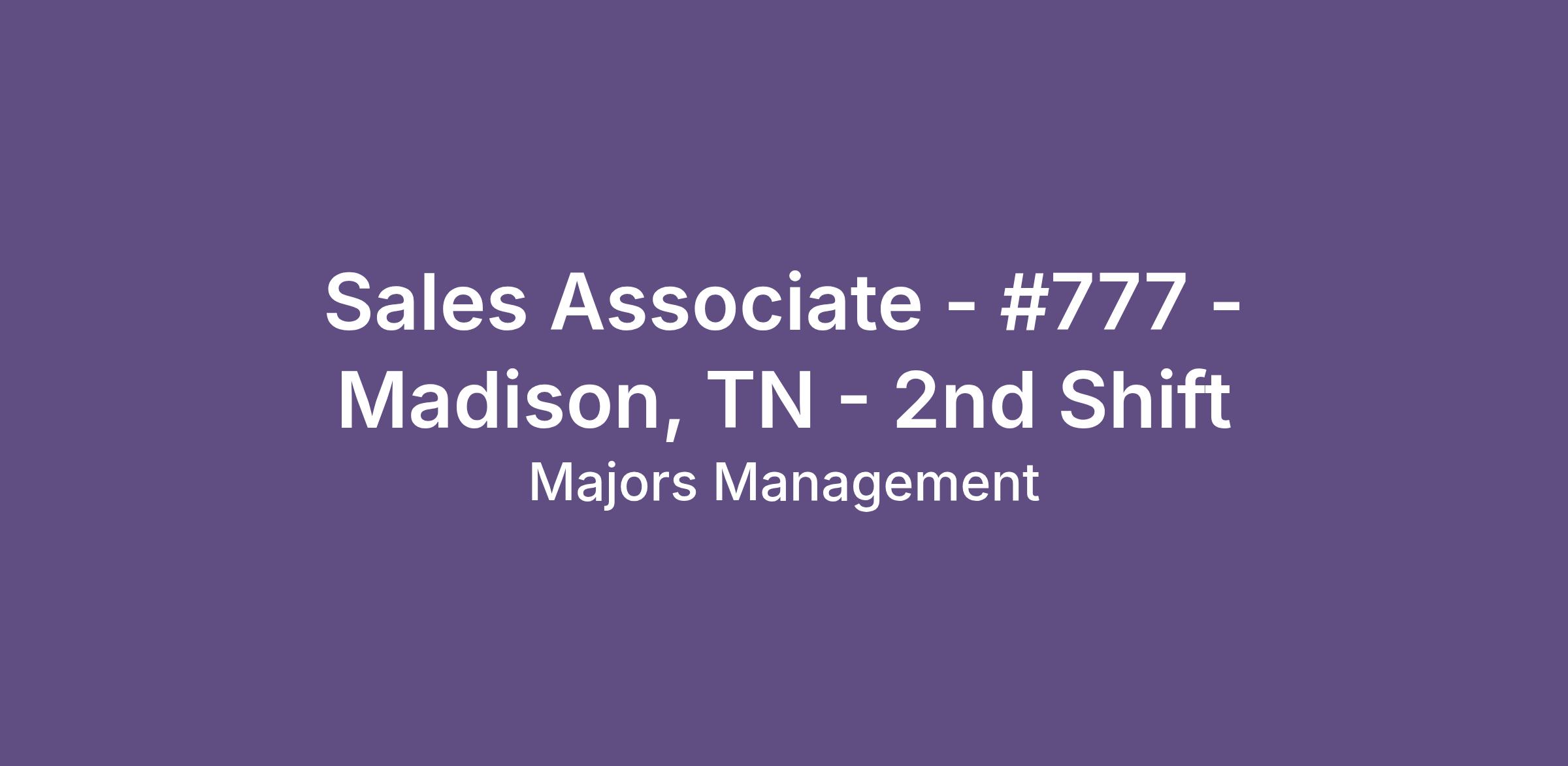 Sales Associate - #777 - Madison, TN - 2nd Shift