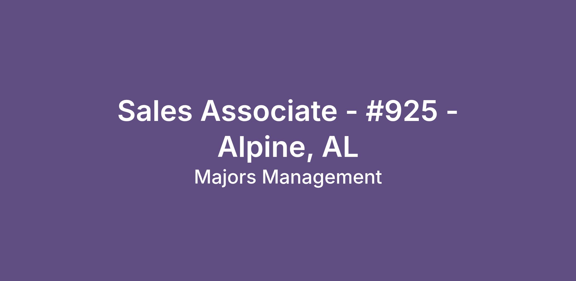 Sales Associate - #925 - Alpine, AL