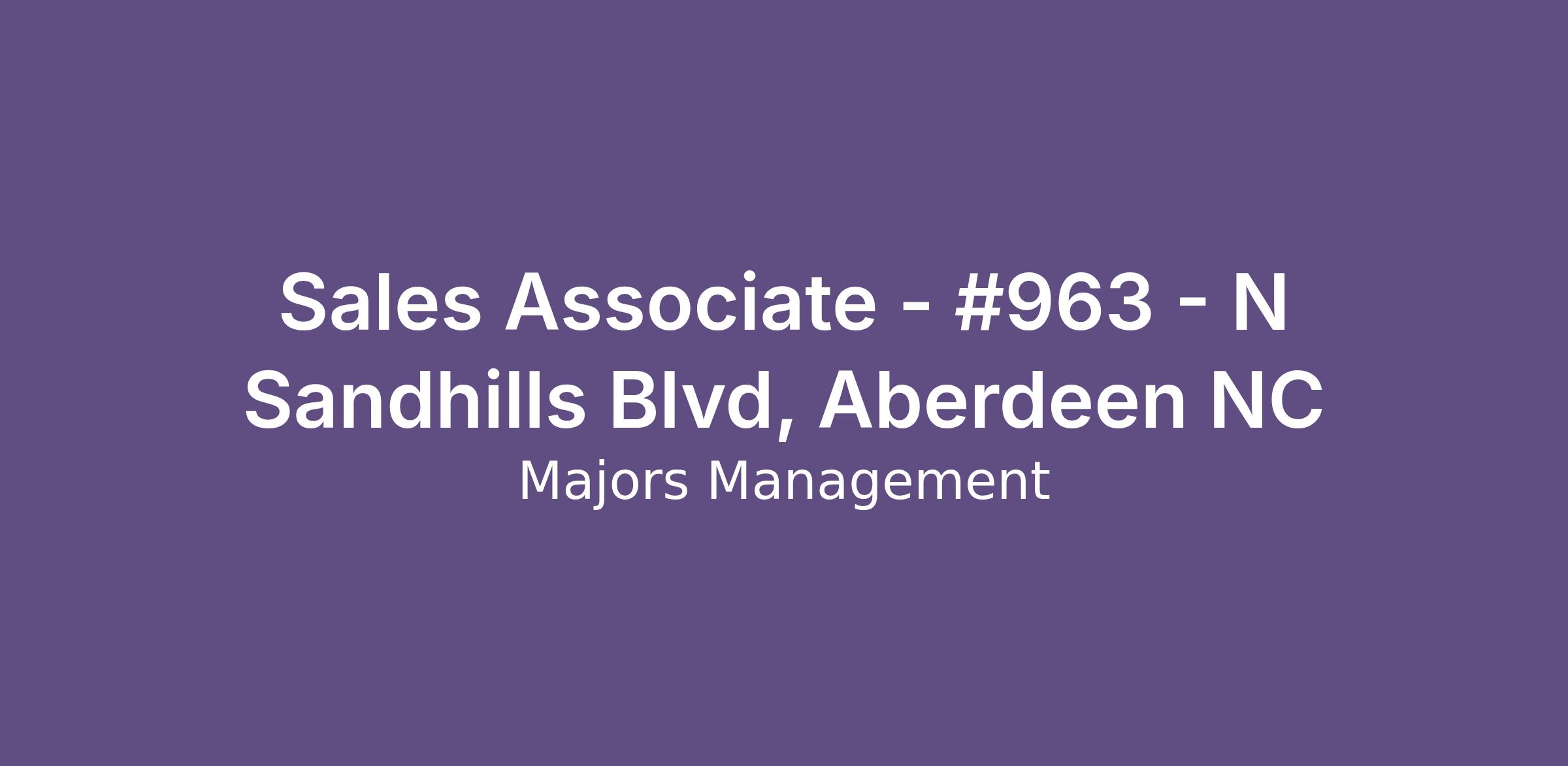 Sales Associate - #963 - N Sandhills Blvd, Aberdeen NC