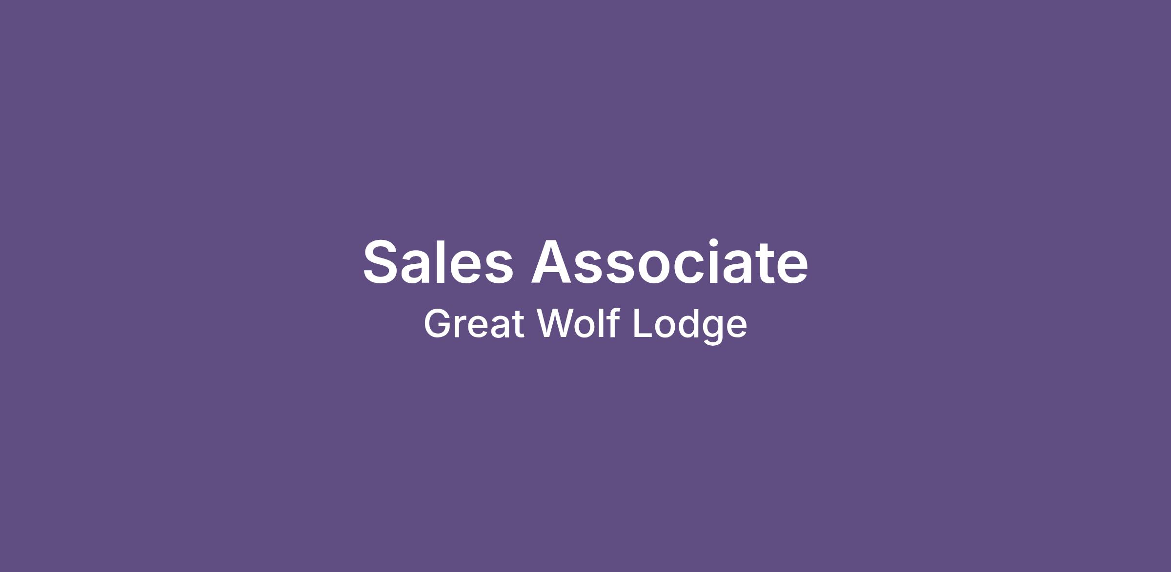 At Great Wolf the Sales Associate uncovers, converts and services high volume group and event business in accordance with goals established by Lodge leadership, contributing to the overall success of the Lodge.