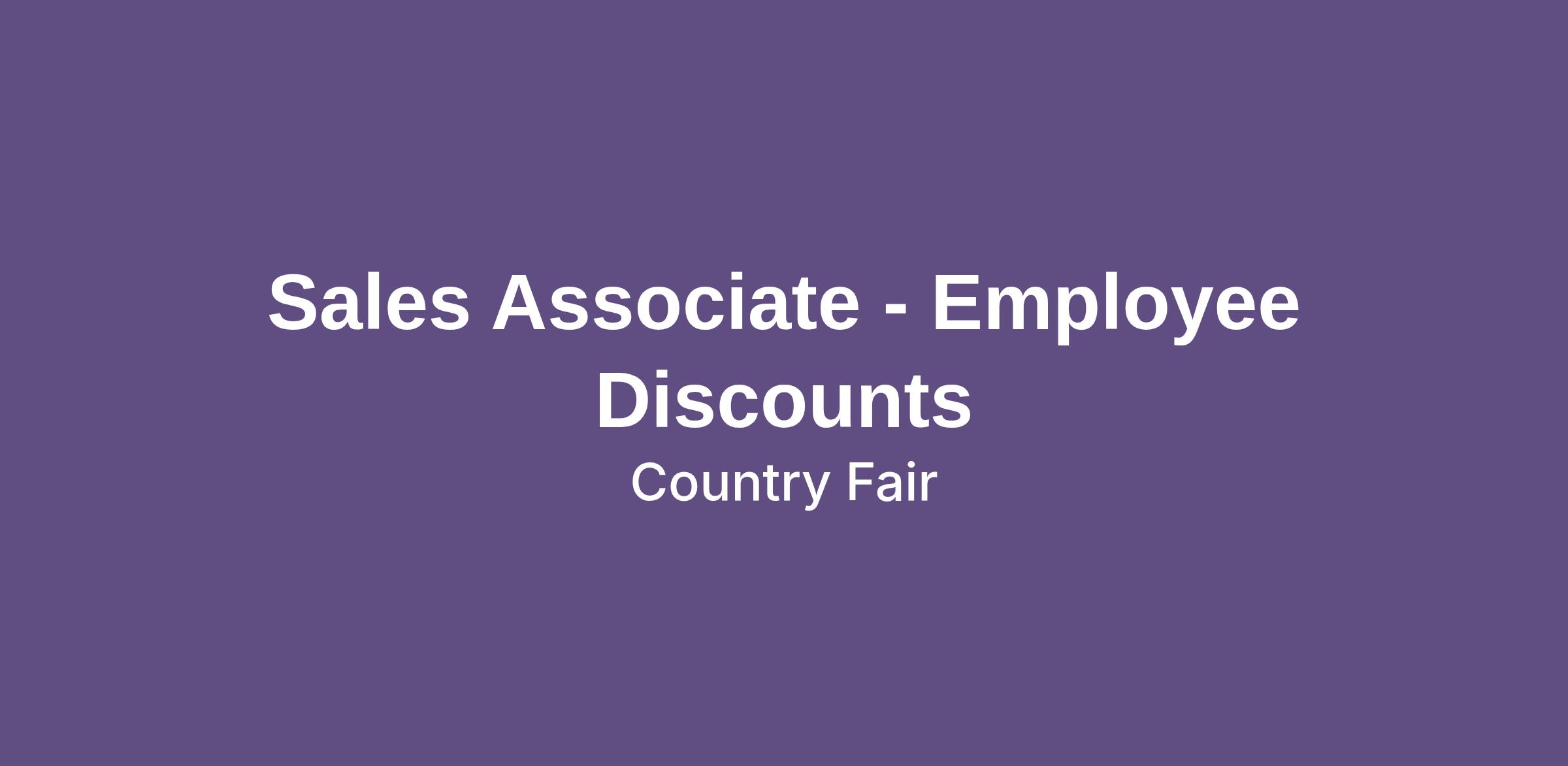The most important people at Country Fair are the ones who serve our customers on a day to day basis.  That’s not just our belief; that’s our way of life.  Sales Associates are our first contact with our valued customers and perform a wide variety of duties to deliver on our mission statement: “Country Fair Cares - about its Customers, its Team and its Community.” Our mission, combined with an excellent culture for training, has garnered us recognition as "Best Places to Work" on multiple occasions.
