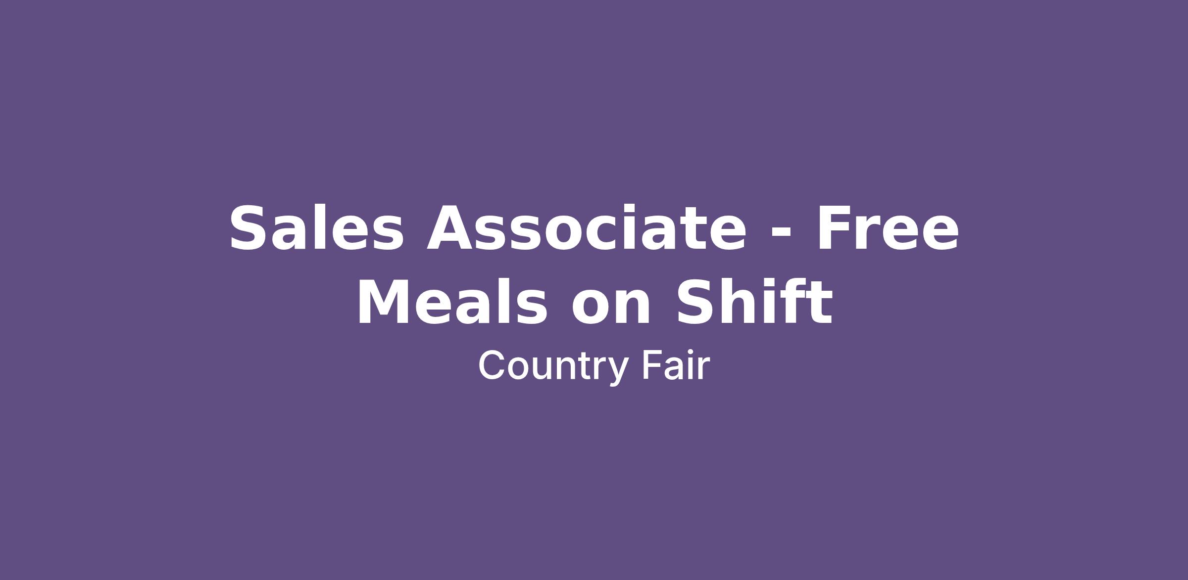 Sales Associate - Free Meals on Shift