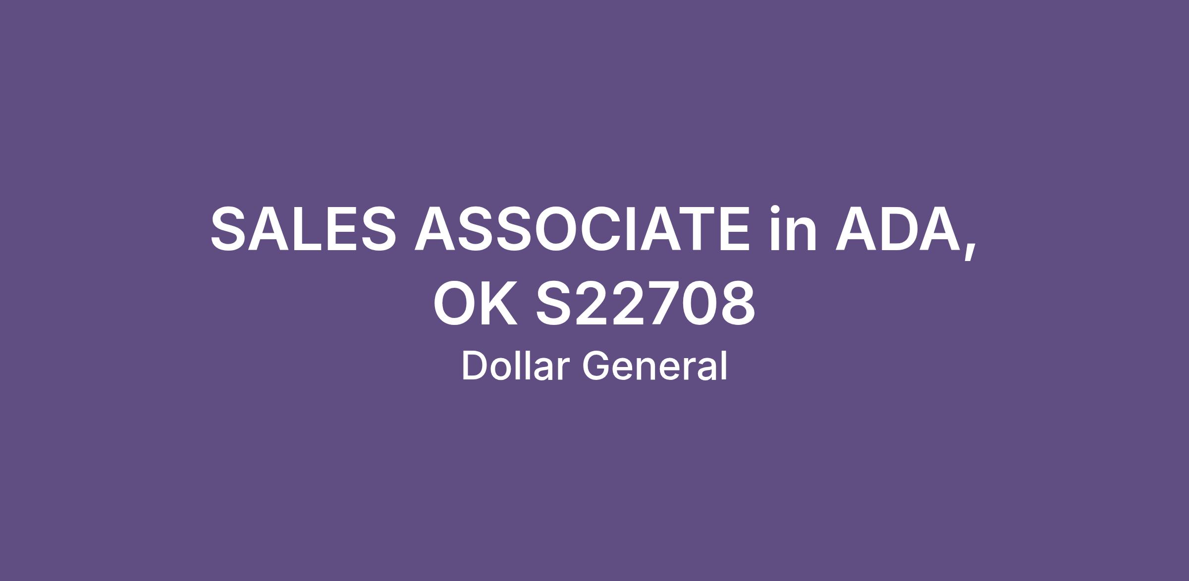 SALES ASSOCIATE in ADA, OK S22708