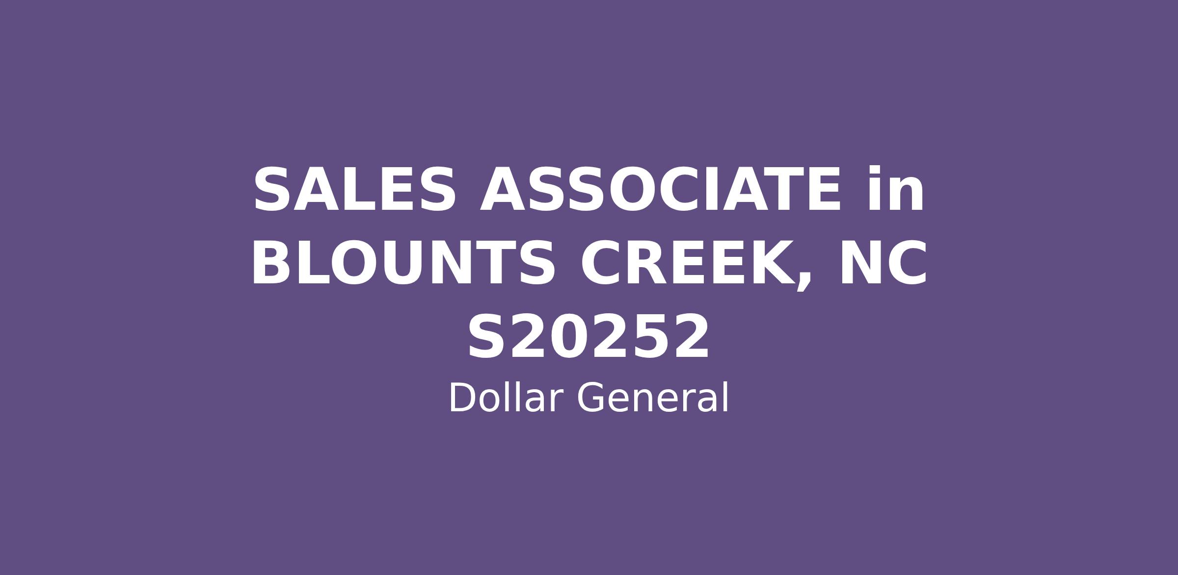SALES ASSOCIATE in BLOUNTS CREEK, NC S20252