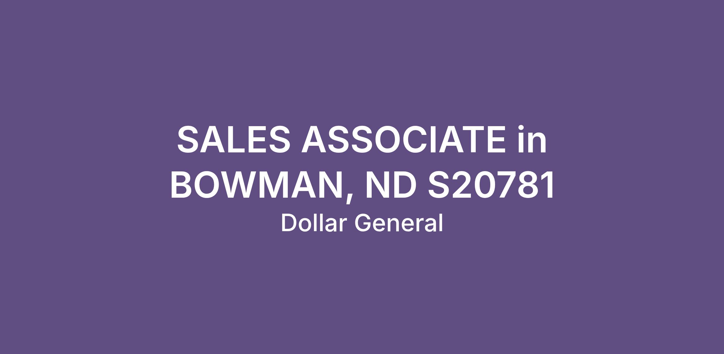 SALES ASSOCIATE in BOWMAN, ND S20781