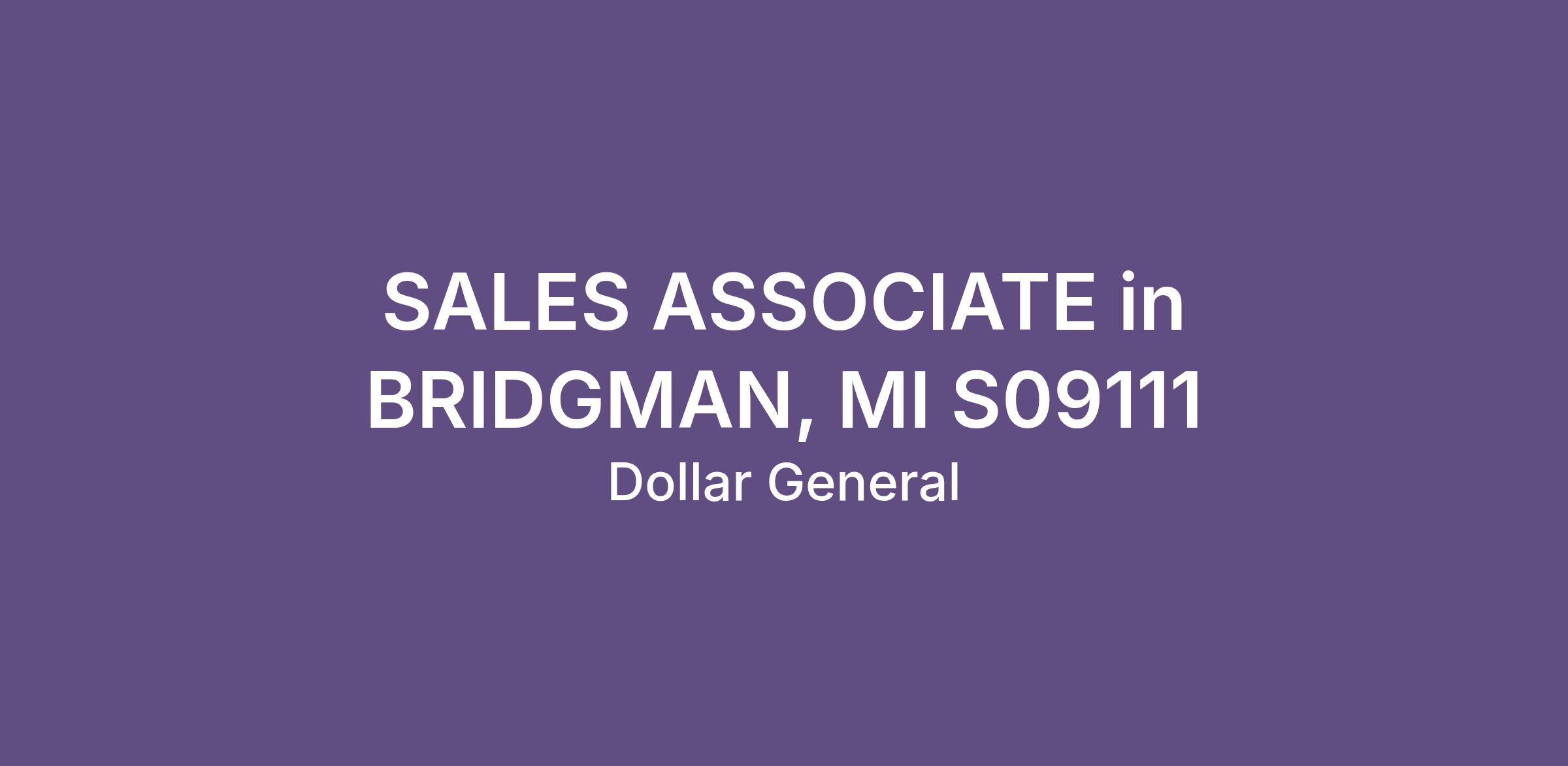 SALES ASSOCIATE in BRIDGMAN, MI S09111