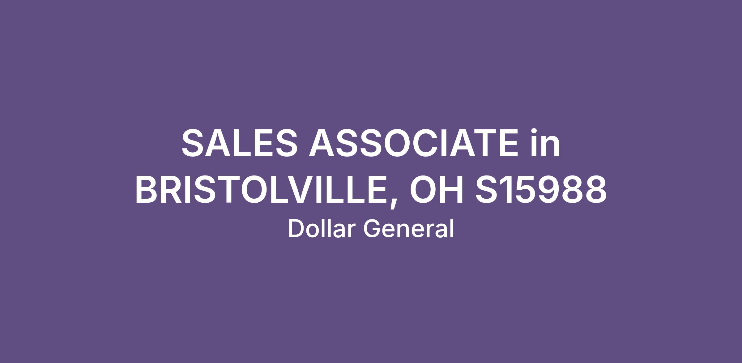 SALES ASSOCIATE in BRISTOLVILLE, OH S15988
