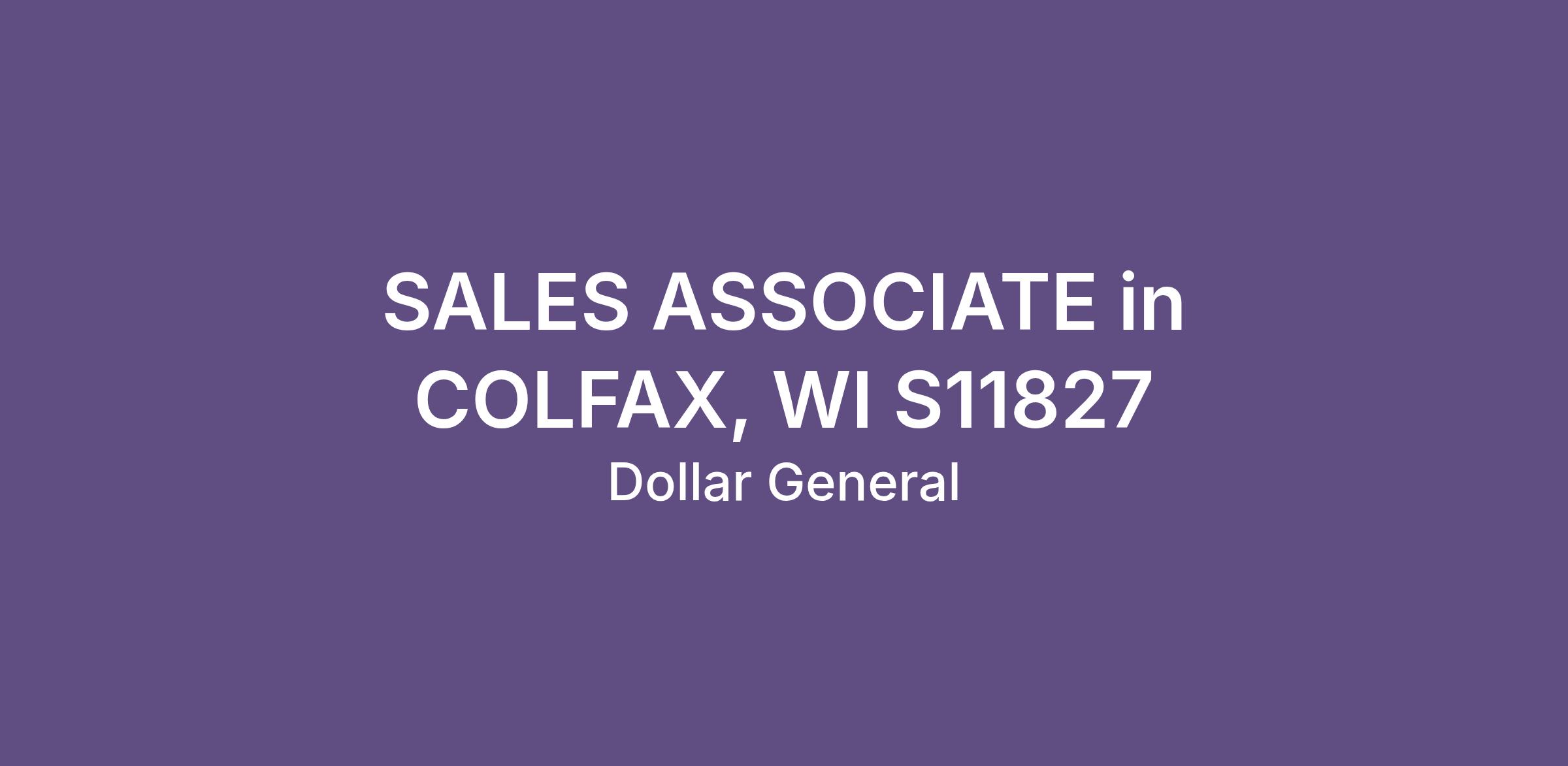 SALES ASSOCIATE in COLFAX, WI S11827