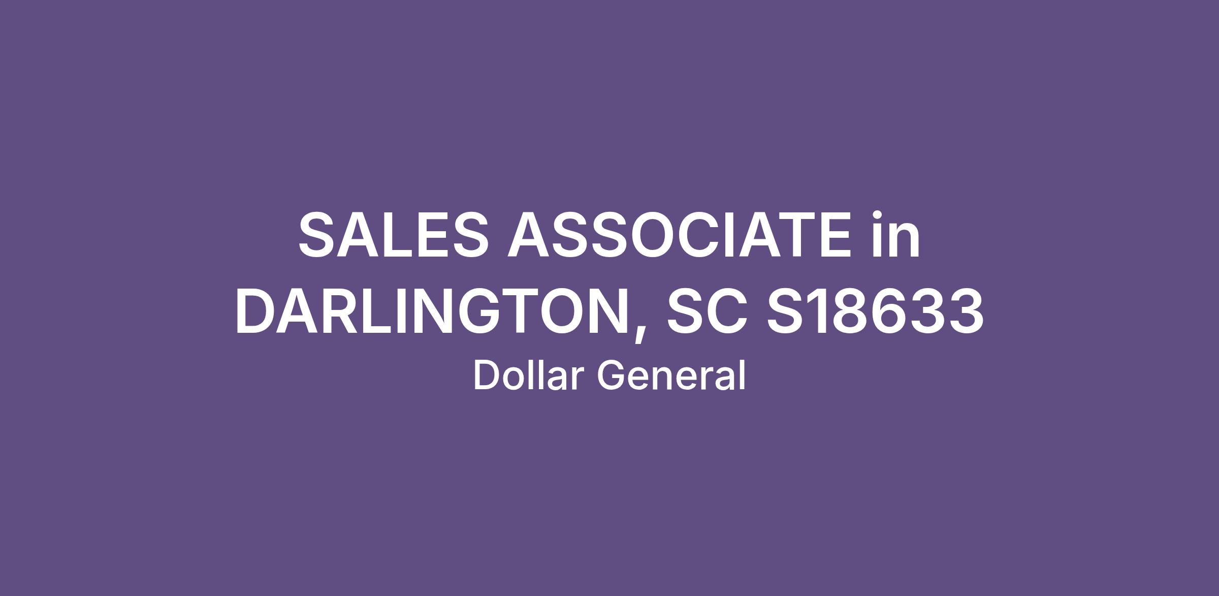 SALES ASSOCIATE in DARLINGTON, SC S18633