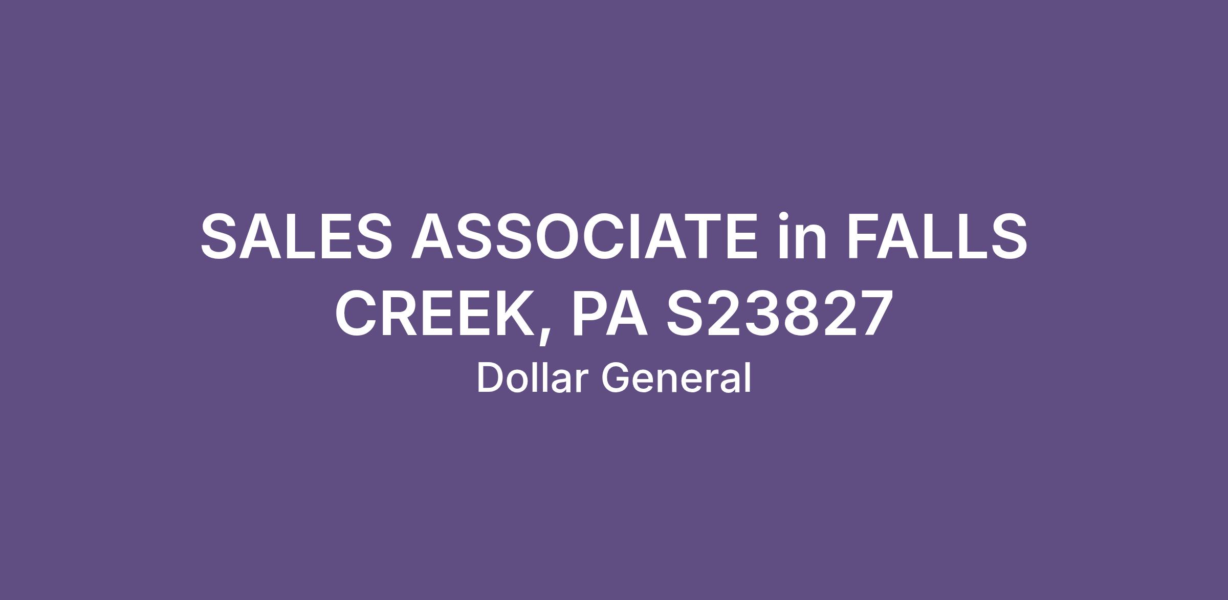 SALES ASSOCIATE in FALLS CREEK, PA S23827